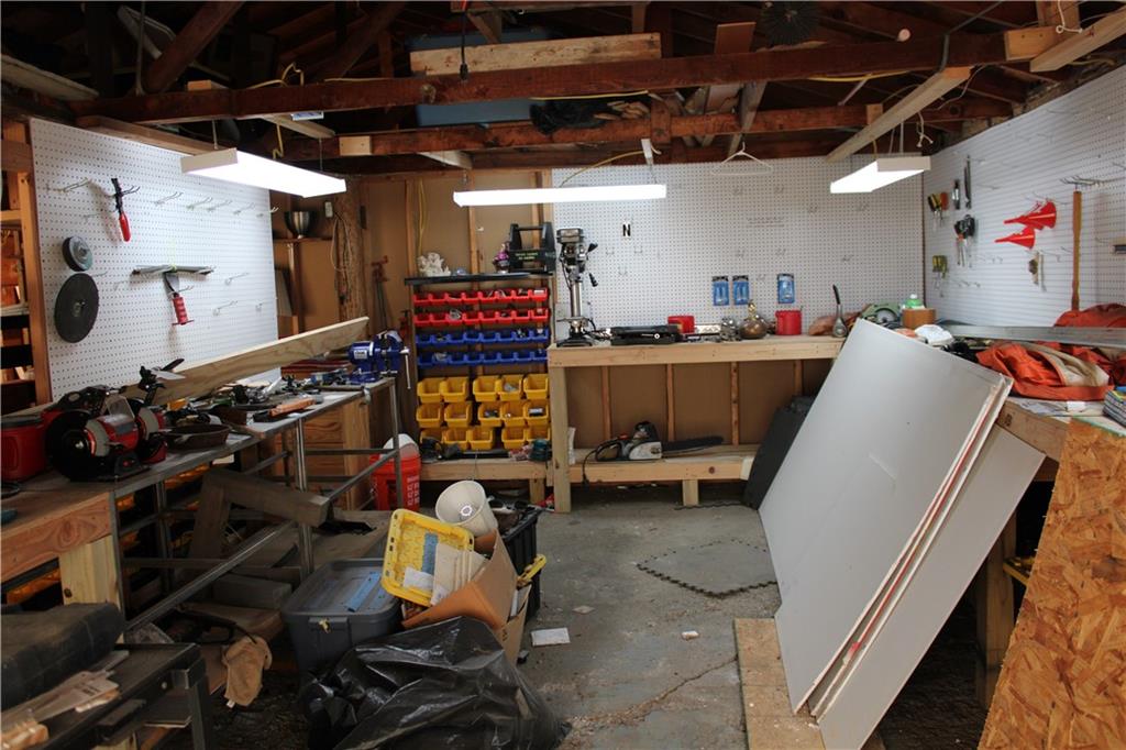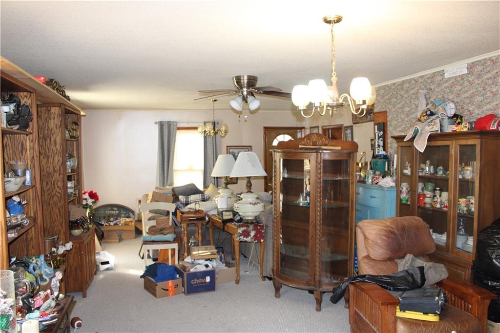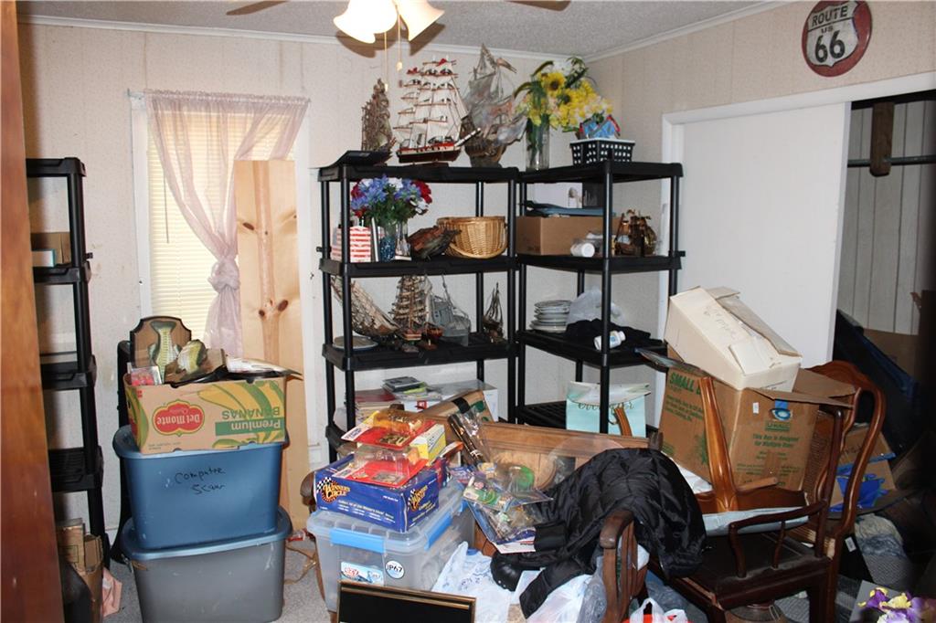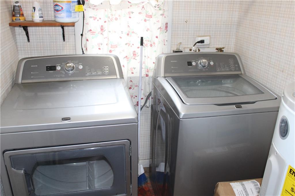 Two-bedroom, one-bath home on a corner lot, with a large living room that leads to both bedrooms, the kitchen, and the family room. The family room has a new fireplace insert/ All kitchen appliances stay, as well as the new commercial-sized sink and faucet. The included washer and dryer are located in their own room, just off the kitchen. There's a lot of kitchen storage, as well as a large pantry. It also has a fully screened-in back porch and central heat and air. The detached two-car garage has a separate workshop and carport. There is an additional storage shed inside the fenced backyard. Most of the furniture and personal items will transfer to the new owner