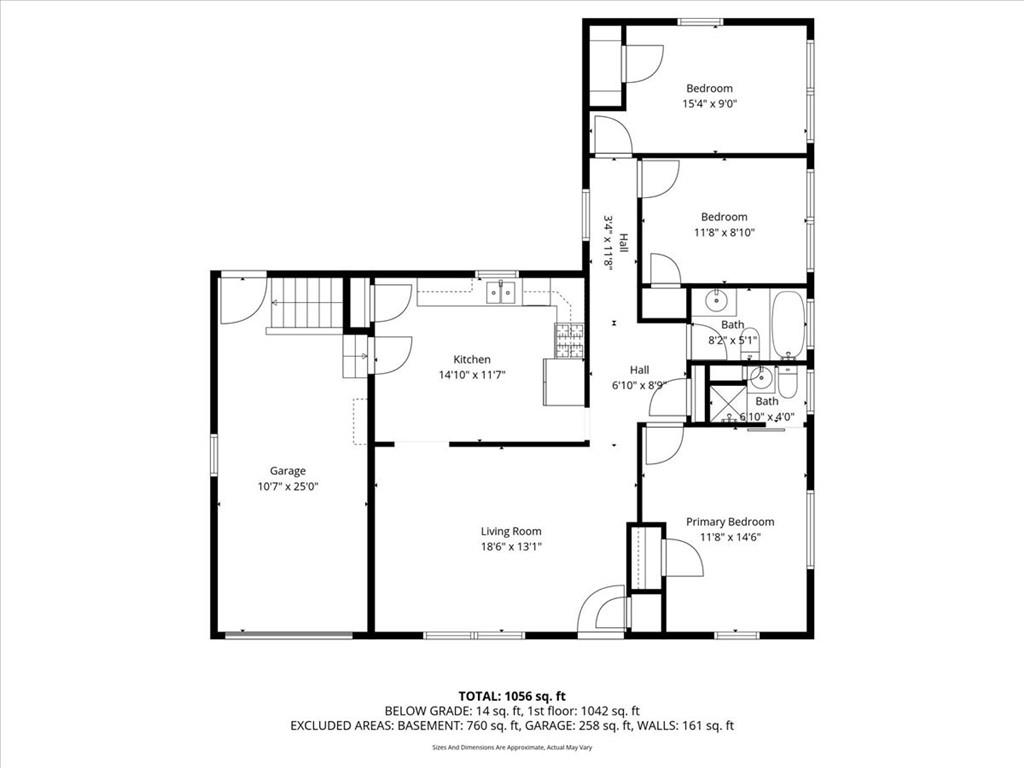 It's larger than it looks. Generous 3BR/2ba (primary en-suite) true ranch in Waldo for under $240K. Hardwood floors throughout with tile bathrooms and laminate kitchen. Stainless steel appliances convey. Versatile bedroom floor plan layout perfect as a bedroom, home office, or den/tv room. Large private fenced backyard with trex decking, a small koi pond, and three raised garden beds. Good lighting in unfinished basement which was used as extra hangout space. It was a rental for several years with zero turnover. Attached 1 car garage and tandem driveway space for two additional cars. Less than a mile from downtown Waldo and less than a block to the park. Easy access to Hwy-71 and not far from I-435. Whether adding to your rental portfolio or buying for yourself and your next adventure, this is a solid home with good bones waiting for its next owner.