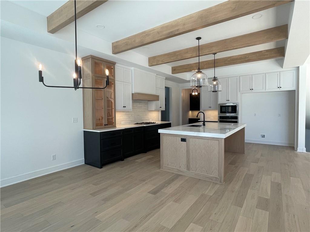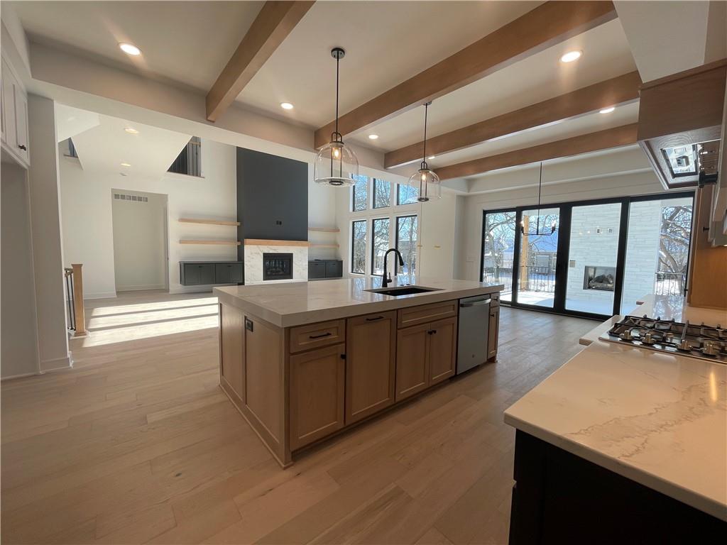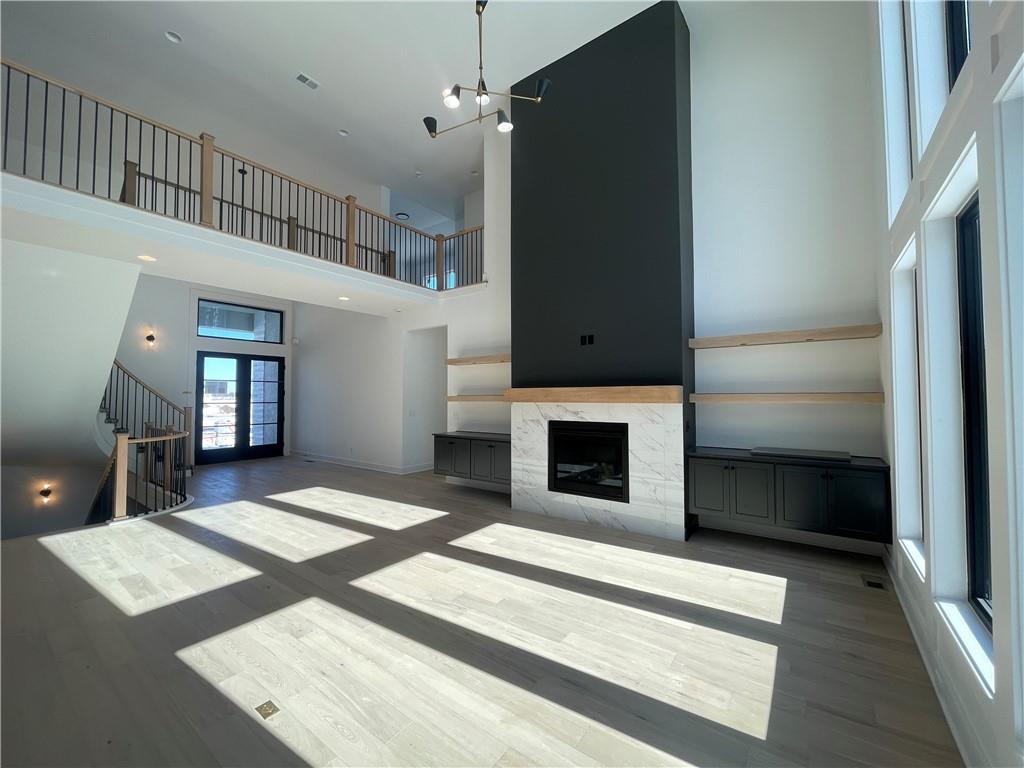 The "Woodland" Modern 1.5 Story by JFE Construction is here on a Daylight Lot backing to trees and trail! As you enter the foyer with a soaring ceiling you are greeted by an exquisite grand staircase open to the 2nd level. Stunning 2 story windows in the Great Room with ample natural light with views of the back yard to trees. Cozy up to the fireplace in the Great Room. Kitchen boasts a expansive island, chef's dream, walk-in pantry and walkout your slider doors to your covered exterior living space with another fireplace! Primary En-Suite behind the Great Room with separate vanites, standalone spa tub, walkin closet & even more natural light. Behind the kitchen you'll find your additional bedroom on the main or office, full bath, full laundry room next to boot bench off the interior garage door. Up to the 2nd level you have 3 more bedrooms all with walk-in closets, 1 with Jack & Jill bath, 1 with it's own bathroom next to the Loft. All in the coveted Heritage Ranch, A Lambie-Rieke Community, with Amenities Galore such as state-of-the-art pool, clubhouse, trails, pickleball. play area, half-court basketball, Putting Green & ponds and so much more coming soon! This community provides a wonderful lifestyle and right next to the 1,238 Acre Heritage Park with Dog Park, Sports Parks, Golf, Lake, Trails and so much more! Contact Onsite Agents for Estimated Completion of homes on site, and design selections. Renderings &/or images may show features and sq ft that are subject to change. Welcome Home to Heritage Ranch - one of the last NEW Home Communities in Johnson County! SPEC HOME is Under Construction with an Estimated Completion FEBRUARY 2026 on LOT 33.