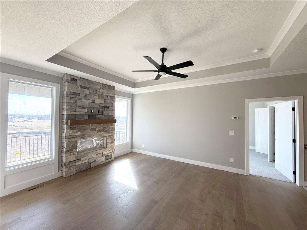 SLASH YOUR MONTHLY PAYMENT! Unlock $20,000 in combined builder and lender incentives to buy down your interest rate and save hundreds on your monthly mortgage! This $10,000 Lambie Homes incentive PLUS a $10,000 lender credit (available through 04/30) makes luxury living in Mize Hill more affordable than ever. MOVE-IN READY & PRICED TO SELL! Beat the spring rush and secure this stunning Lakewood reverse 1.5-story by Lambie Homes. Currently in the final stages of construction and scheduled for a late March 2026 completion, this 4-bedroom, 3-bathroom home offers the perfect opportunity to move into Mize Hill just in time for the new season! The airy main level features a gourmet kitchen with a 6’ island, walk-in pantry, and Level 1 quartz countertops. The heart of the home is the dramatic great room, featuring a floor-to-ceiling Wolf Grey Sawtooth Ledge Stone fireplace. Enjoy quiet mornings or stunning Lenexa sunsets on your covered deck. The layout is perfect for longevity, with the primary suite and laundry on the main level, plus a fully finished lower level with a massive family room and two additional guest bedrooms. Experience maintenance-provided living near Mize Lake and Cedar Station Park. Don't wait for a ground-up build—this home is almost finished and ready for you!