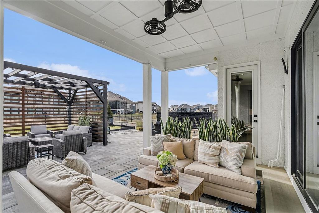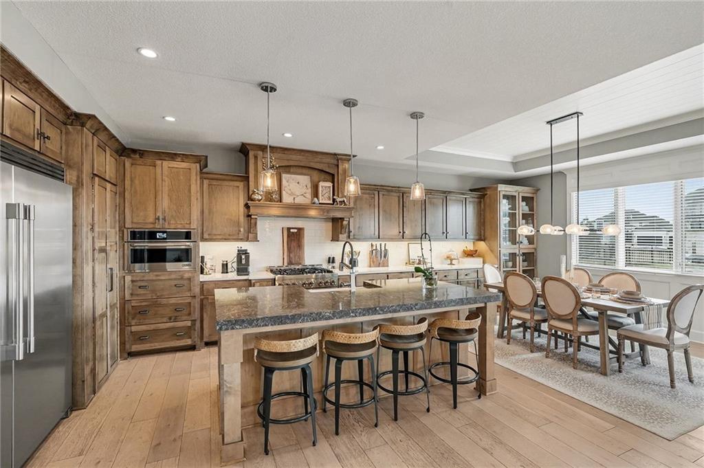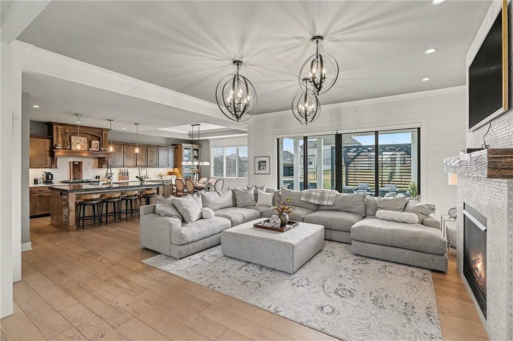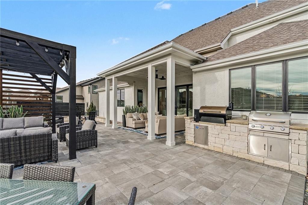 Back on the market due to no fault of the seller. Inspections were completed with no remediation required. Reports are available upon request. Built by Homes by Chris, this extraordinary 1.5-story home blends timeless elegance, thoughtful design & high-end finishes—now From the moment you arrive, elevated lighting, materials & hardware set the tone for refined living. The open-concept main level features a gourmet kitchen with a walk-in pantry and double refrigerator/freezer. The living room offers a fireplace & sliding doors to the outdoor living spaces. The main-floor primary suite is a serene retreat with a spa-inspired bath, while a 2nd bedroom provides flexibility for guests or an office. A half bath & mud room complete the level. Upstairs includes 3 bedrooms, each with an ensuite bath & walk-in closet, plus a laundry room & loft with optional privacy. The finished basement (2022) features a commercial-grade gym & infrared sauna behind a glass wall, a kitchenette with ice maker, refrigerator, microwave & disposal, a rec room with theater seating, flex space & full bath. Enjoy a private backyard oasis with covered patio, pergola, fireplace, fire pit, built-in gas grill & Traeger smoker, plus a bocce court and privacy landscaping. Staley Farms amenities include a fitness center, indoor basketball/pickleball court, pool, tennis & pickleball courts, sand volleyball and trails. If you're a golfer - you have the option to join the award-winning 18-hole private golf course. Bar and restaurant services are available for all residents. Located in Staley High School boundaries, just 15 minutes to downtown, KCI, Liberty or Zona Rosa. Schedule your private showing today.