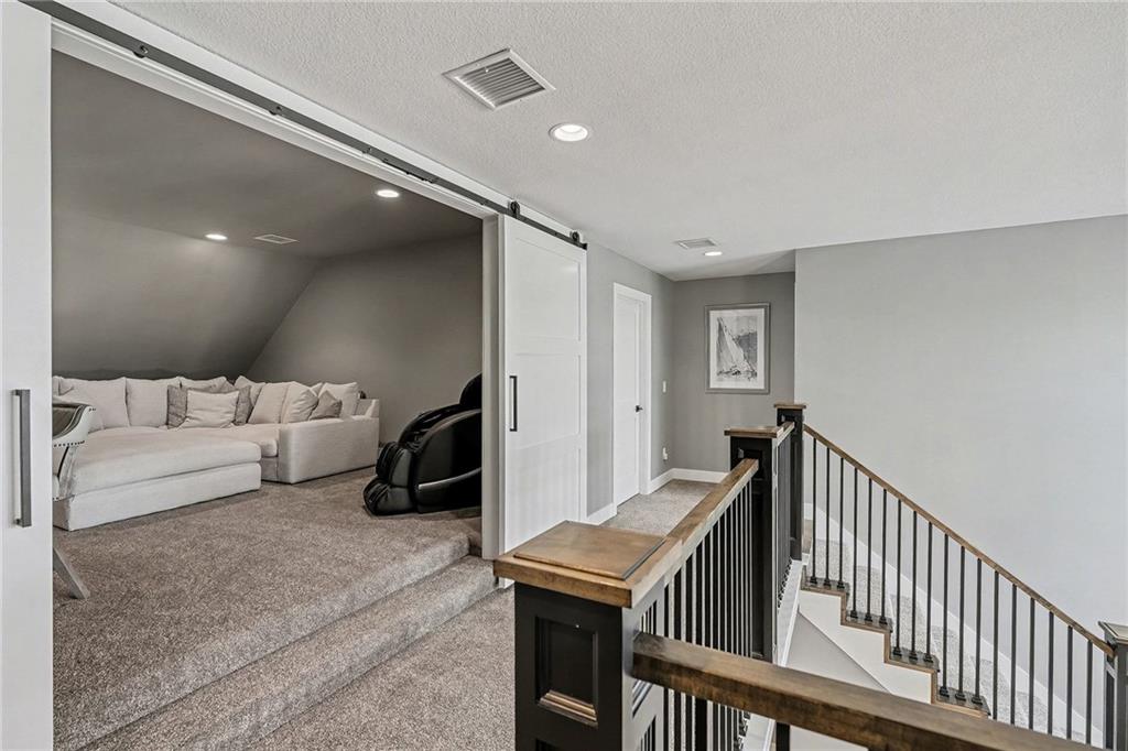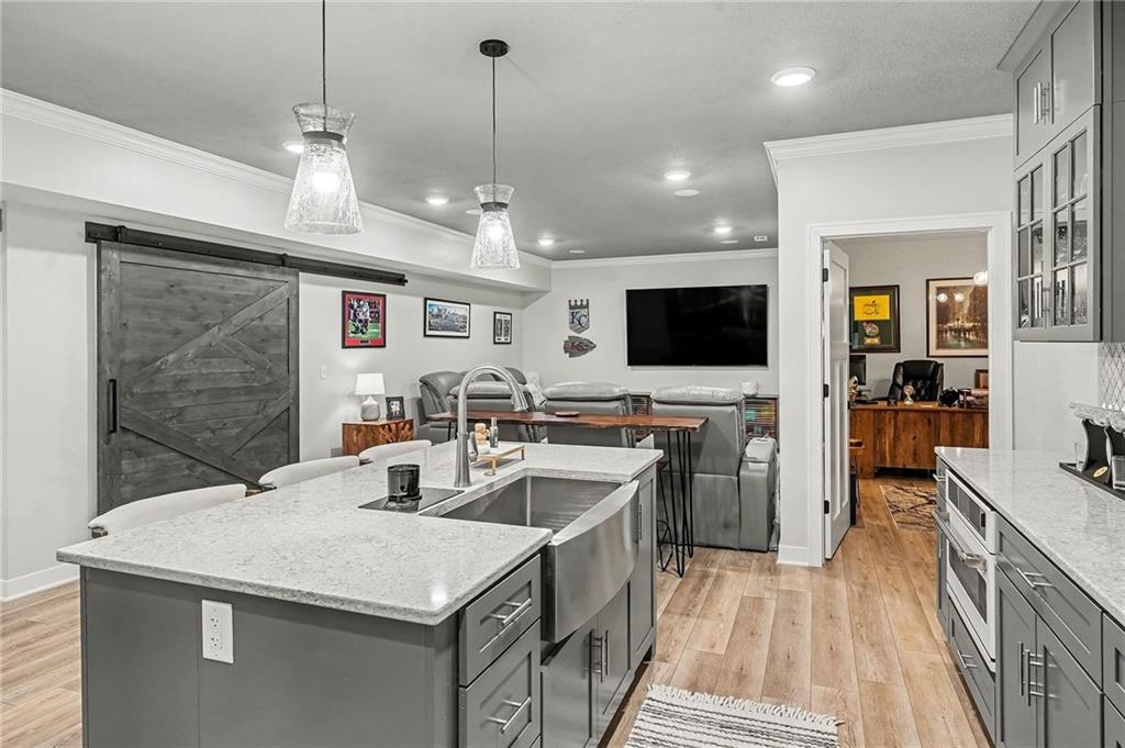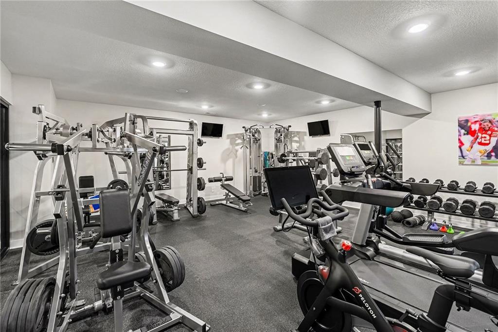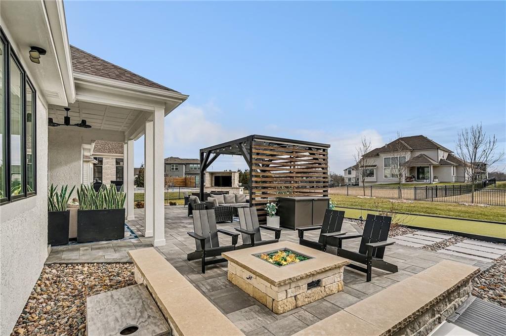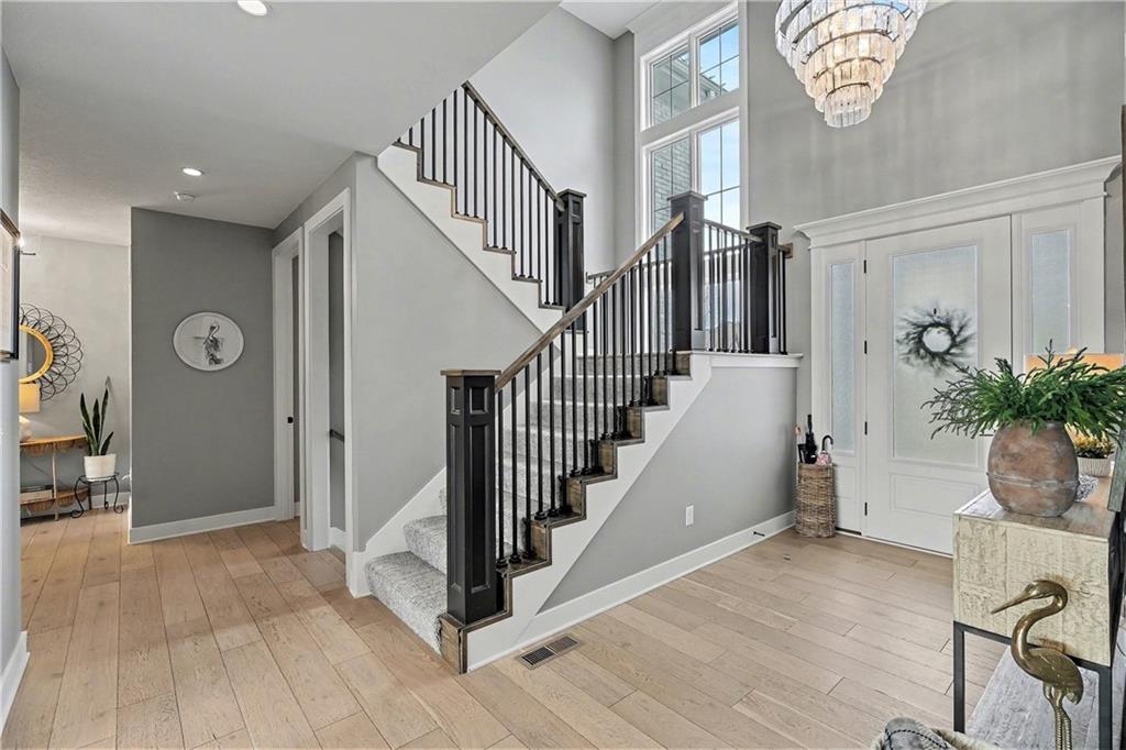 Back on the market due to no fault of the seller. Inspections were completed with no remediation required. Reports are available upon request. Built by Homes by Chris, this extraordinary 1.5-story home blends timeless elegance, thoughtful design & high-end finishes—now From the moment you arrive, elevated lighting, materials & hardware set the tone for refined living. The open-concept main level features a gourmet kitchen with a walk-in pantry and double refrigerator/freezer. The living room offers a fireplace & sliding doors to the outdoor living spaces. The main-floor primary suite is a serene retreat with a spa-inspired bath, while a 2nd bedroom provides flexibility for guests or an office. A half bath & mud room complete the level. Upstairs includes 3 bedrooms, each with an ensuite bath & walk-in closet, plus a laundry room & loft with optional privacy. The finished basement (2022) features a commercial-grade gym & infrared sauna behind a glass wall, a kitchenette with ice maker, refrigerator, microwave & disposal, a rec room with theater seating, flex space & full bath. Enjoy a private backyard oasis with covered patio, pergola, fireplace, fire pit, built-in gas grill & Traeger smoker, plus a bocce court and privacy landscaping. Staley Farms amenities include a fitness center, indoor basketball/pickleball court, pool, tennis & pickleball courts, sand volleyball and trails. If you're a golfer - you have the option to join the award-winning 18-hole private golf course. Bar and restaurant services are available for all residents. Located in Staley High School boundaries, just 15 minutes to downtown, KCI, Liberty or Zona Rosa. Schedule your private showing today.