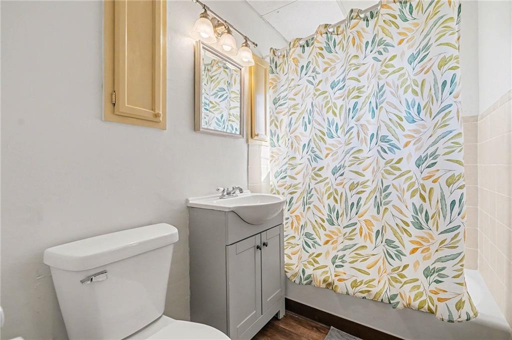 This charming home features beautiful original hardwood floors throughout. The main level offers two generously sized bedrooms and bath, while the upper level provides two additional spacious bedrooms and a full bathroom. The partially finished walk-out basement includes extra living space, ample storage, and convenient exterior access. Step outside to a large, open backyard perfect for play and relaxation, complete with a handy storage shed.