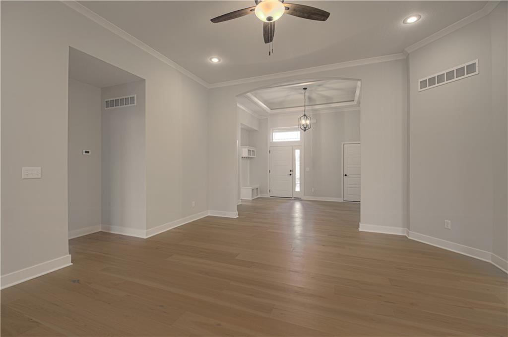 Discover the Richmond by Hoffmann Custom Homes, a beautifully crafted true ranch designed for modern comfort and easy, everyday living. From the moment you enter, you’re welcomed by an impressive entryway that opens into a generous great room highlighted by soaring ceilings and an inviting, open layout. The kitchen seamlessly connects to the main living space and showcases dark engineered hardwood flooring, soft white enameled cabinetry, updated contemporary lighting, and a large center island accented with light granite—perfect for gathering and entertaining. Just beyond the dining area, a covered deck extends your living space outdoors, ideal for relaxing or hosting. This home is built with both strength and energy efficiency in mind. It is pre-wired for future solar panels, includes a dedicated EV charger receptacle, and features additional energy-saving enhancements throughout. The lower level is already stubbed for a future bathroom, allowing the opportunity to expand your living space as your needs grow. This home is currently in the Finishing stages of Construction - Check back in for status updates on the construction of this stunning new build! Note: Pics are of same trim pkg but different decor pkg.