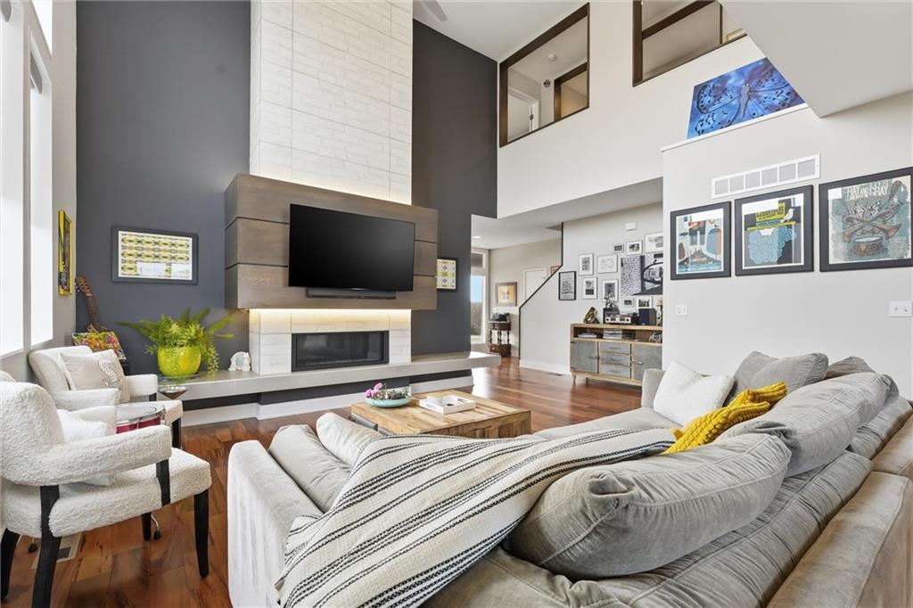 Come tour this contemporary beauty in the sought after Overland Ridge community. Built by Suma Design & Construction, this property boasts 22-foot ceilings in the great room, along with a statement fireplace with designer tile and hearth. Floor to ceiling windows flood the home with natural light. The spacious kitchen offers a gas cooktop, walk-in pantry and Bosch appliances. The expansive primary suite features a spa-like bath, complete with a free standing soaker tub and make-up counter. The 4th bedroom on the main level could double as a home office. A finished lower level provides additional living space with an exercise room (could also serve as a playroom) and a generous non-conforming 5th bedroom with an egress, good-sized closet and a stunning en suite with double vanity, quartz tops, upgraded tile and shower. Extend your entertaining onto the covered composite deck. The owners also added a patio in the back and upgraded landscaping. The oversized 3-car side entry garage has a 240 outlet for an EV. Just a short walk to the community pool and the back deck offers a great view of fireworks on the 4th. This lightly-lived in home is a must-see.