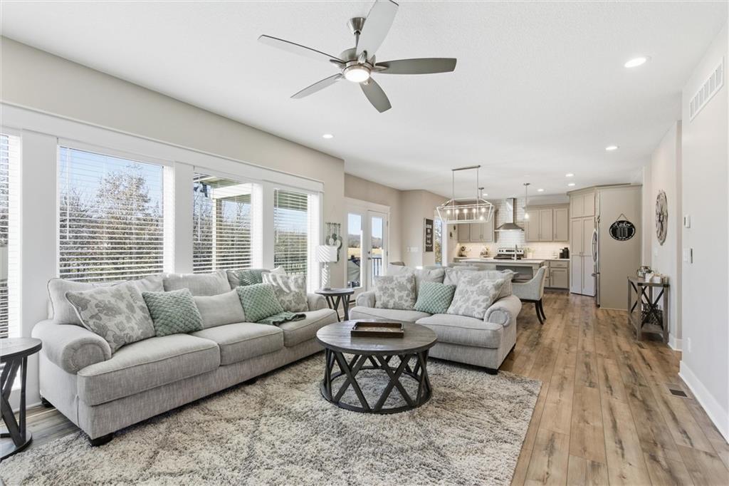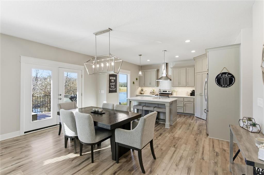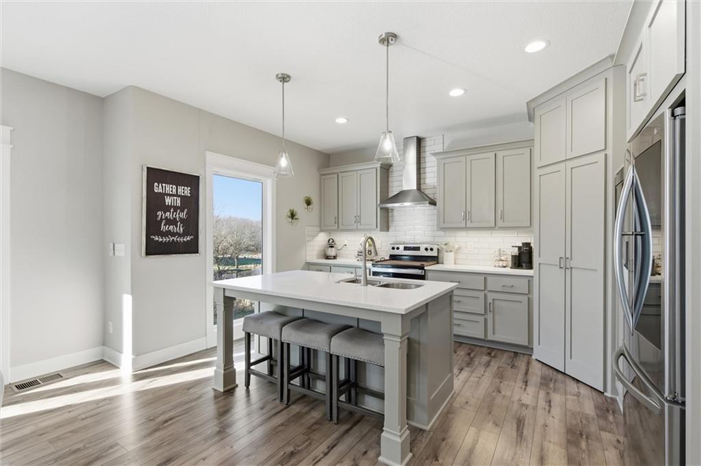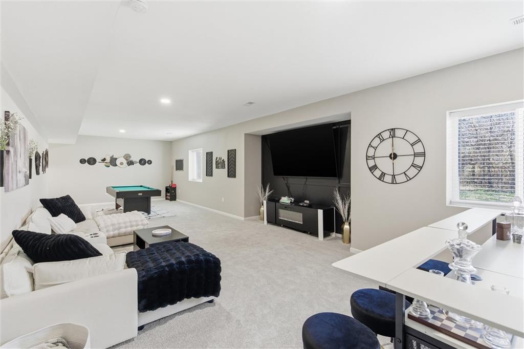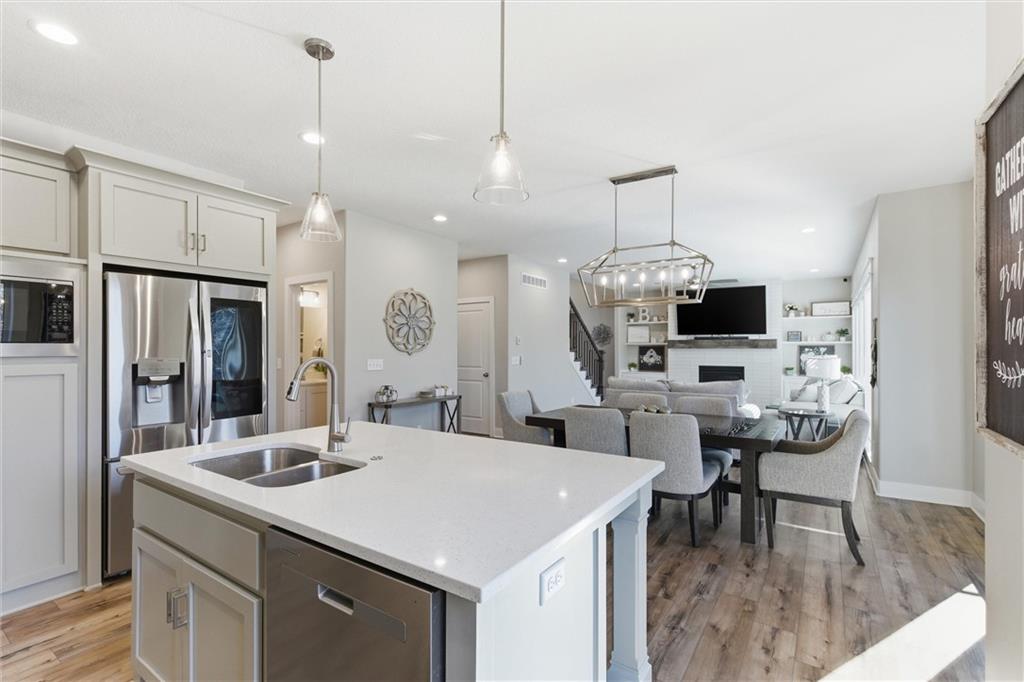 Two-story home by Regency Homes that looks and feels like a model—barely lived in and impeccably maintained. The open-concept kitchen is designed for both everyday living and entertaining, featuring an oversized island, custom cabinetry, and elegant quartz countertops. The living room is anchored by a striking floor-to-ceiling tiled fireplace, creating a warm yet modern focal point. Luxury vinyl plank flooring flows throughout the main living areas, with plush carpeting in the bedrooms for comfort. The primary suite offers a true retreat, highlighted by a spa-inspired bath with an oversized tiled shower, a separate soaking tub, and high-end finishes throughout. The laundry is on the second floor making it convenient for everyone. The newly finished basement expands the living space significantly and is ideal for a family room, home gym, office, or guest area—ready to fit your lifestyle needs. Hang out on your covered deck, and look at the water. Bonus is the 3 car garage with massive driveway, and located in a cul-de-sac. She is a beauty! Just move in, and enjoy the incredible space.