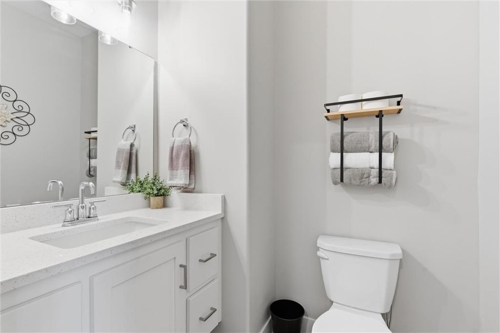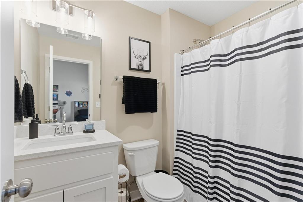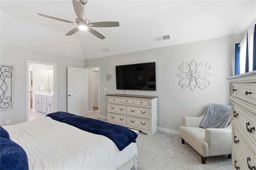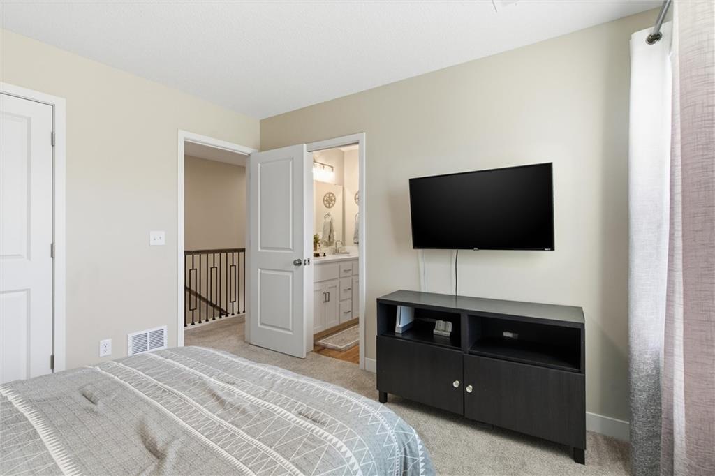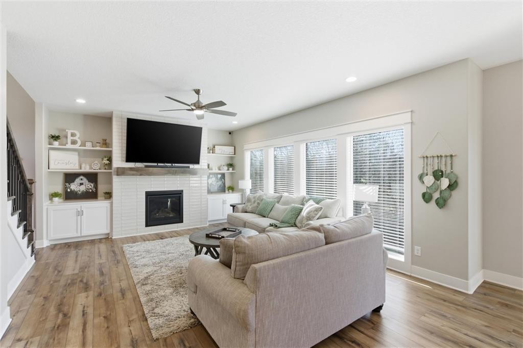 Two-story home by Regency Homes that looks and feels like a model—barely lived in and impeccably maintained. The open-concept kitchen is designed for both everyday living and entertaining, featuring an oversized island, custom cabinetry, and elegant quartz countertops. The living room is anchored by a striking floor-to-ceiling tiled fireplace, creating a warm yet modern focal point. Luxury vinyl plank flooring flows throughout the main living areas, with plush carpeting in the bedrooms for comfort. The primary suite offers a true retreat, highlighted by a spa-inspired bath with an oversized tiled shower, a separate soaking tub, and high-end finishes throughout. The laundry is on the second floor making it convenient for everyone. The newly finished basement expands the living space significantly and is ideal for a family room, home gym, office, or guest area—ready to fit your lifestyle needs. Hang out on your covered deck, and look at the water. Bonus is the 3 car garage with massive driveway, and located in a cul-de-sac. She is a beauty! Just move in, and enjoy the incredible space.