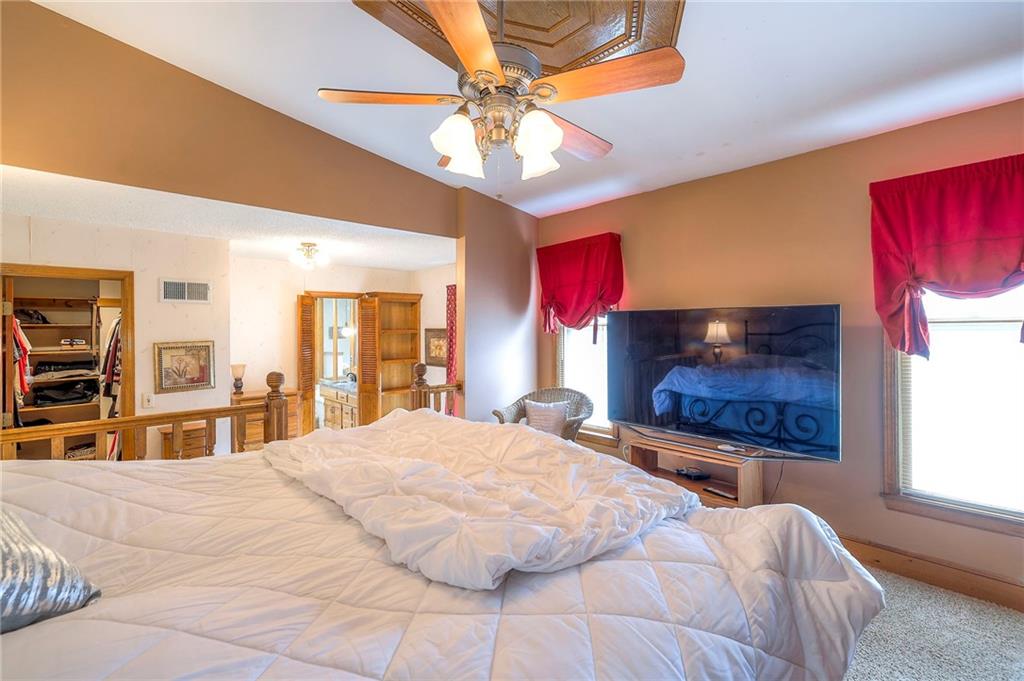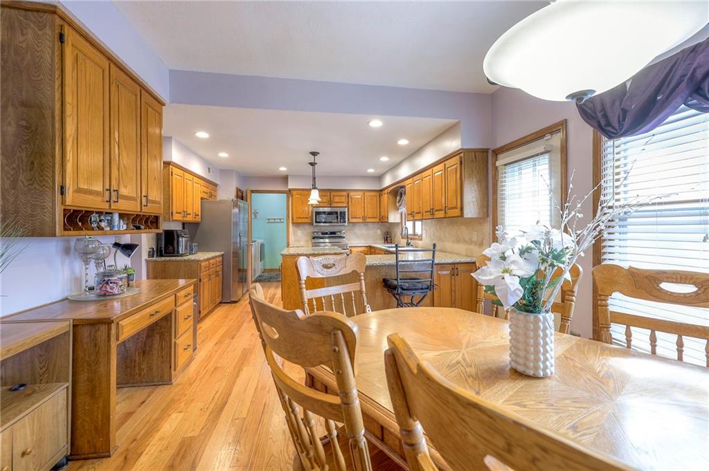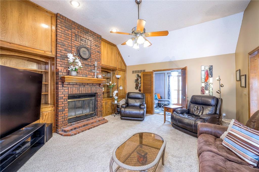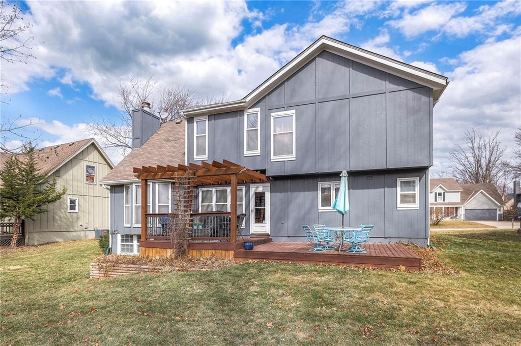 Welcome to this light-filled home in the desirable Havencroft neighborhood! The oversized Great Room features a vaulted ceiling, cozy fireplace and built-in bookshelves--perfect for relaxing or entertaining. Just off the welcoming entryway, a versatile Bonus Room makes an ideal home Office or Library. The upgraded Kitchen offers a new granite island, abundant cabinetry, two additional pantries, and all appliances stay. Gleaming hardwood floors highlight the Entry, eat-in Kitchen and half Bath. A covered Deck extends from the Kitchen, overlooking a beautiful, treed backyard oasis. The spacious Primary Suite showcases a Vaulted ceiling, huge walk-in closet and luxurious Bath with double vanities, walk-in shower and spa tub. Three additional Bedrooms feature new carpet and oversized closets. Enjoy nearby, Haven Park, with playground, tennis courts, trails and picnic area. Located in a friendly neighborhood close to shopping, grocery, highways and award winning schools in the acclaimed Olathe School district. Fast possession available--move in and start enjoying your new home sooner!