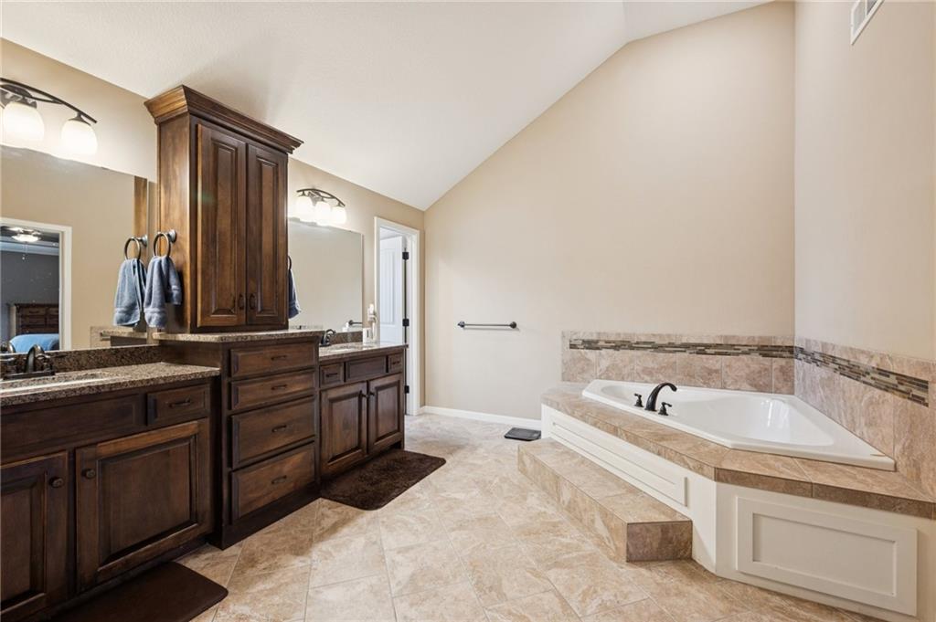 Well maintained, though could use some fresh paint in spots, 1 owner home in sought after Staley Hills. This is the expanded Lexington II by McFarland. Seller loves the neighborhood, their neighbors, convenient location but no longer needs all the space & ready to downsize. You'll love the openness of the main level with gleaming hardwood floors & abundance of windows allowing for lots of natural light! Formal dining area makes ideal office, additional living area or as the seller has done, perfect place for your grand piano. The great room has fireplace with beautiful stacked stone surround, bookcases & curved wall of windows overlooking the backyard. Spacious kitchen is an entertainer's dream with large island including bar area for seating or the perfect buffet serving line, granite counters, abundance of cabinets, many with roll out shelves plus a HUGE walk-in pantry, stainless appliances featuring a gas range and a new dishwasher. Spacious eating area w/vaulted ceiling opens onto the covered patio which extends into the expanded patio the seller included when building the home. The primary suite features a raised ceiling with indirect lighting, HUGE walk-in closet, double vanity (granite) with a cabinet stack, tiled floor, corner whirlpool and separate shower room w/oversize tiled shower. Secondary bedrooms each have a vaulted ceiling, ceiling fan & private bath access. Bedroom 2 has walk-in closet. Lower level family room is great for movie nights, room for pool table & great hang out area for kids and adults of all ages! There's a 5th bedroom with walk-in closet but also makes a great private office, work out/craft/play room for all the kids' toys! There's also a 4th full bath in addition to unfinished storage areas. Enjoy the neighborhood pool, ponds & trails! Great location is close to stores, services, restaurants, entertainment & main roads for quick access to KCI airport & downtown KC! Kids can walk to the highly rated elementary & high schools.