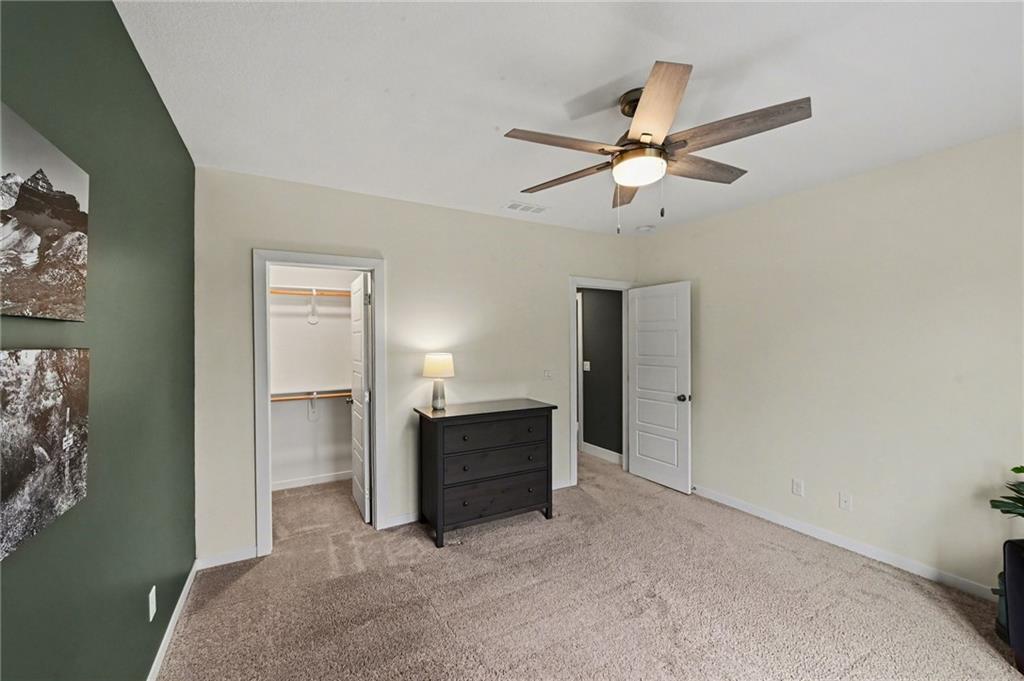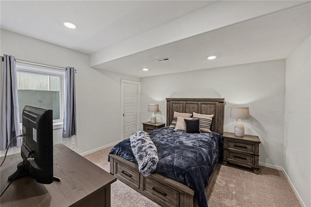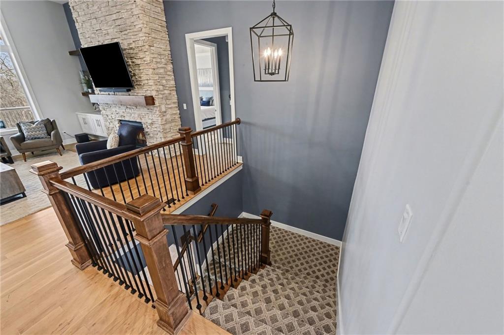 Located in the highly sought-after Canyon Creek Point villas, this beautifully designed home offers 5 bedrooms, 3.5 baths, and an oversized 3-car garage--blending luxury with effortless main-level living. The open-concept floor plan is ideal for both everyday comfort and elegant entertaining, complemented by a finished walkout lower level. The lower level features three additional bedrooms, a full bath, a stylish wet bar, all opening to a serene wooded setting. At the heart of the home, the chef’s kitchen is a true showstopper, showcasing an expanded gas cooktop, upgraded custom cabinets, stainless steel built-in appliances, a striking wood vent hood, and an expansive island designed for gatherings. A huge walk-in pantry offers abundant shelving, a beverage cooler, and a prep sink for added convenience. The primary suite serves as a private retreat filled with natural light from a wall of windows, overlooking peaceful greenspace. The spa-inspired bath features a freestanding tub, quartz countertops, an oversized walk-in shower, and a spacious closet with pull down upper racks. Thoughtful upgrades are evident throughout including hardwood floors extending into the primary suite and second main floor bedroom, a dramatic floor-to-ceiling stacked stone fireplace in the great room, upgraded tile selections, a basement wet bar, and a well-appointed laundry room with built-ins and a sink. Enjoy year-round outdoor living on the screened in upper covered deck and a covered patio off of the walkout lower level, with metal fencing surrounding the yard. There are nature trails within the subdivision and Mize Park is just around the corner on Canyon Creek Parkway. This maintenance-free, resort-style community offers the ultimate lock-and-leave convenience--simply move in, relax and enjoy.