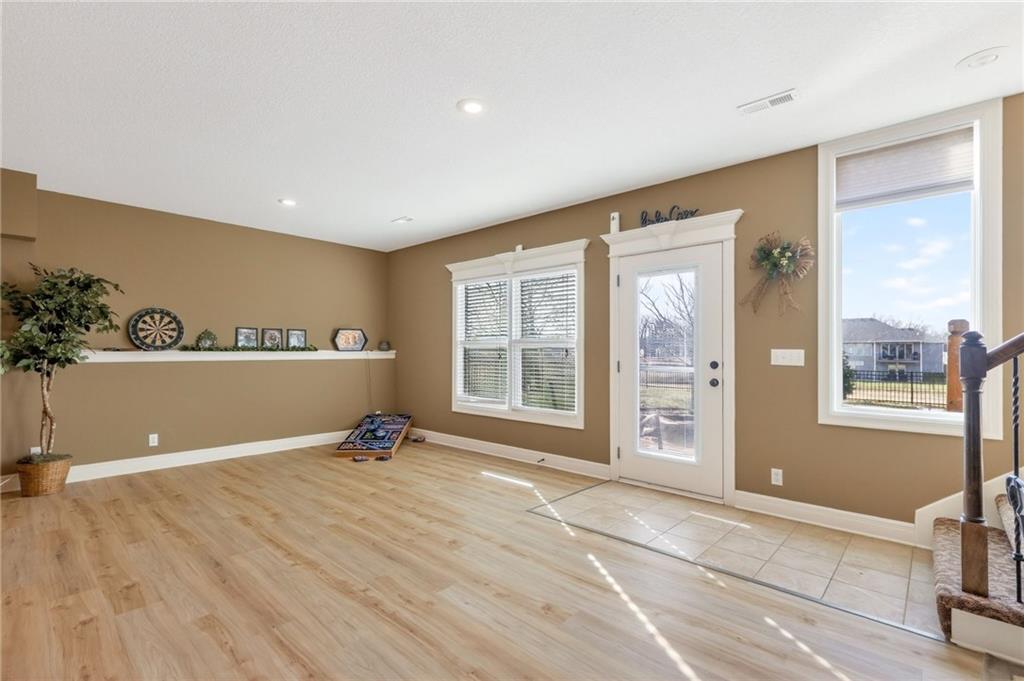 Welcome home to this beautifully maintained reverse ranch in the sought-after community of Kearney, MO, offering space, style, and functionality throughout. This 4-bedroom, 3-bath home features a 3-car attached garage and a spacious open-concept floorplan connecting the kitchen, dining area, and living room-perfect for everyday entertaining. The living room is anchored by a cozy fireplace, while the dining area walks out to a private deck, ideal for morning coffee or evening gatherings. The upstairs primary suite is generously sized with vaulted ceilings and a private bath retreat. The finished lower level expands your living space with a welcoming family room featuring a gorgeous bar, additional bedrooms, and a hidden bonus room perfect for storage, a home gym, or hobby space. The walk-out basement leads to a nicely fenced backyard complete with a paver stone patio and a built-in fire pit, creating an inviting outdoor oasis for all seasons. Located in a highly desirable neighborhood with easy access to schools, shopping, and highways - this home checks all the boxes. Come and take a look! We think you'll love it!
