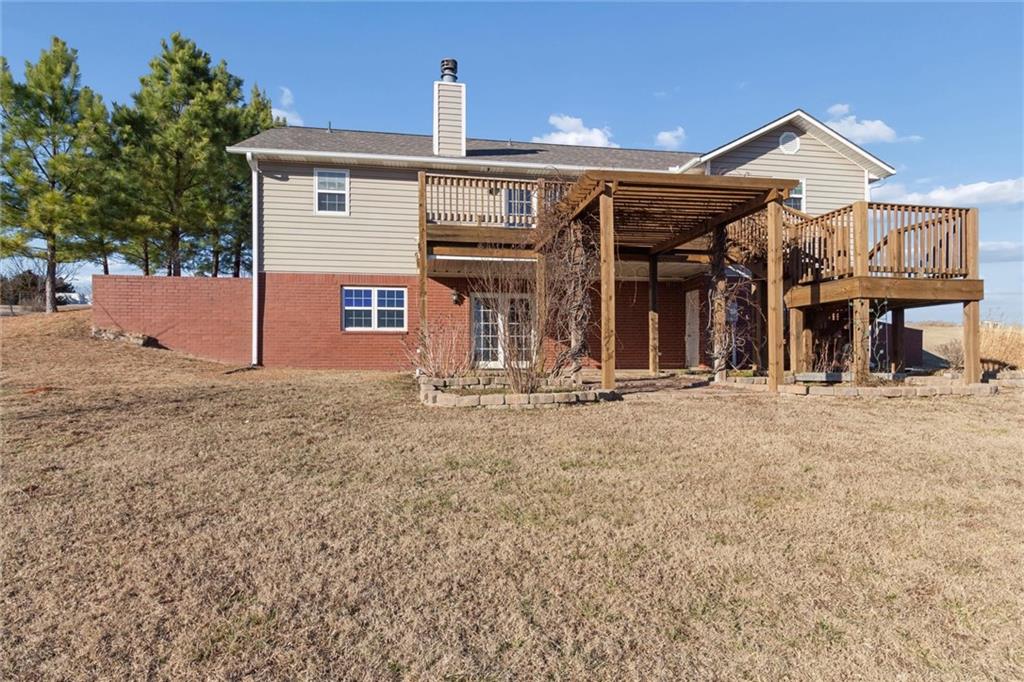Set on 3.9 acres, this stunning hillside ranch offers 4 bedrooms, 3 baths, and 2,364 sq ft of living space with breathtaking panoramic views of Caney. The main floor features ¾ rough-hewn oak floors, an open layout with wood-burning fireplace, primary suite with private bath, and French doors leading to a spacious deck. The walkout basement includes a second living area with fireplace, garage access, guest bedroom, and full bath. Recent updates include a new roof (2024), HVAC (4 yrs), and 60-gal water heater (3 yrs). Outdoor highlights include a stocked pond, enclosed chicken coop, 15 irrigated raised garden beds, a small vineyard, fruit trees, and perennial landscaping. Extras like a storage shed, weather station, security camera, and LED lighting make this Caney Heights gem move-in ready. Schedule your showing today!