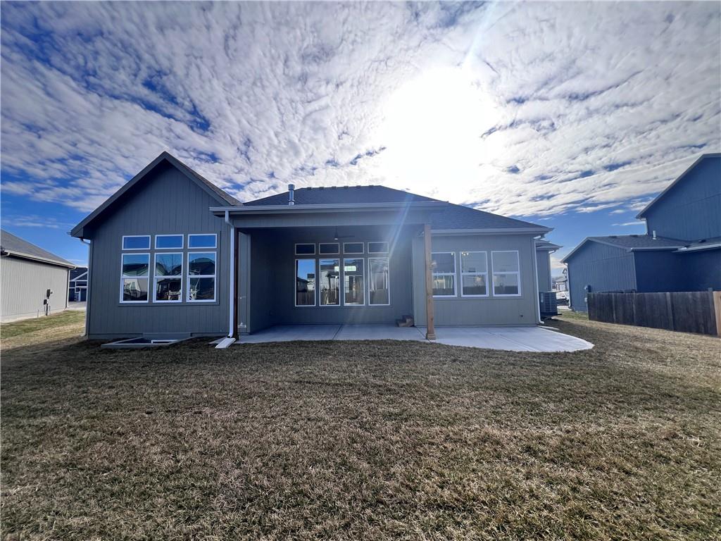 To tour this home, please stop by the model home located at 32290 W 165th Street. Welcome to Symphony Farms, one of the most sought after subdivisions in Gardner. Lifestyle Building & Design's newest plan, The Belmont is a true RANCH HOME with 3 bed, 2 bath, 3 car garage. Everything you need is on the main floor...... Large windows inviting natural light in the open living room, kitchen and dining room. The kitchen has custom cabinets, island and GE Profile appliances including a dishwasher, microwave, cooktop and wall oven and a large custom walk-in pantry! Kitchen opens up to the family room which has a gas fireplace and built-ins, The private entry from the 3 car garage has a custom-made boot bench to keep everything organized. The primary bedroom has vaulted ceiling with a beam, ceiling fan, and he 3 large windows . The primary bathroom has a double vanity and walk in shower with a bench and connects to the custom closet. The 2 secondary bedrooms are next to a shared bathroom. The laundry room has custom cabinets. a fully sodded yard, sprinkler system, insulated garage and garage door openers with key pad. the Belmont has a covered patio and additional patio, fully sod yard, garage door openers with key pad and insulated garage. The large unfinished basement is set up for 2 additional bedrooms, bathroom and family room. Completion date February 2026.