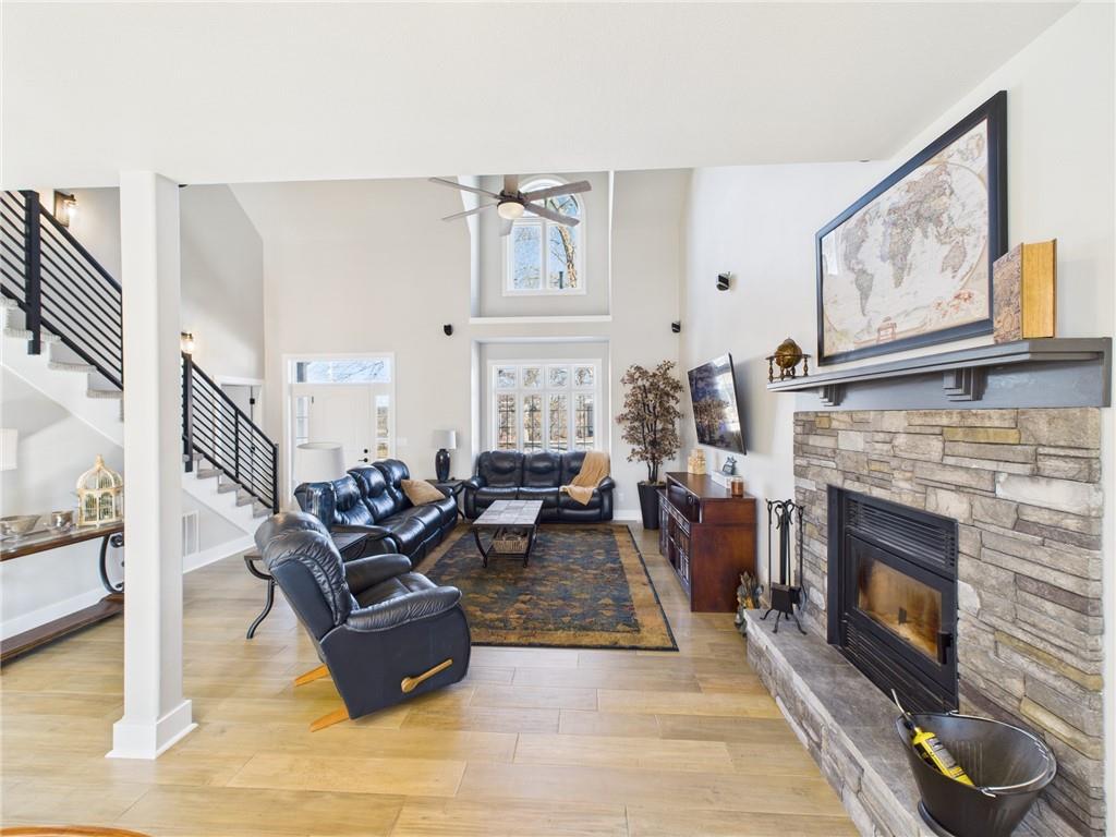 Built in 2022 and situated on approximately 0.34 acres, this beautiful 3-bedroom, 2-bath home is located in the desirable Paradise Point subdivision. (3rd bedroom does not have a window) The seller truly spared no expense with upgrades throughout the home. The entry welcomes you into an open floor plan with soaring cathedral ceilings and large windows that flood the home with natural light. The living room is cozy and spacious with a wood-burning fireplace sitting perfectly between the living and dining rooms, creating a warm and inviting atmosphere. The dining room features tall, elegant windows and a French door that opens to a large deck and flows seamlessly into the spacious kitchen, making it ideal for entertaining. The kitchen offers an abundance of tall cabinetry, large island with additional seating and elegant granite countertops. Just off the kitchen is a large pantry/laundry room with granite countertops and additional storage. The spacious main-level primary bedroom features a full bath with granite countertops and a tiled walk-in shower. Upstairs, you’ll find a loft overlooking the main living area, two spacious bedrooms, and a large bathroom featuring granite countertops and a dedicated makeup vanity. One upstairs bedroom includes pull-down attic access for extra storage. The attached garage is approximately 740 square feet with tall ceilings, two garage doors, and a built-in tornado shelter located in the floor of the garage. Between the home and the detached garage is a circle drive for additional parking. The detached shop with concrete flooring offers an additional 190 square feet of workspace or storage. This home is part of the Paradise Point subdivision in Warsaw, MO, on the Upper Osage Arm of the Lake of the Ozarks. The community offers lake access, private docks, and close proximity to marinas and swim beaches—perfect for boating, fishing, and lake living.