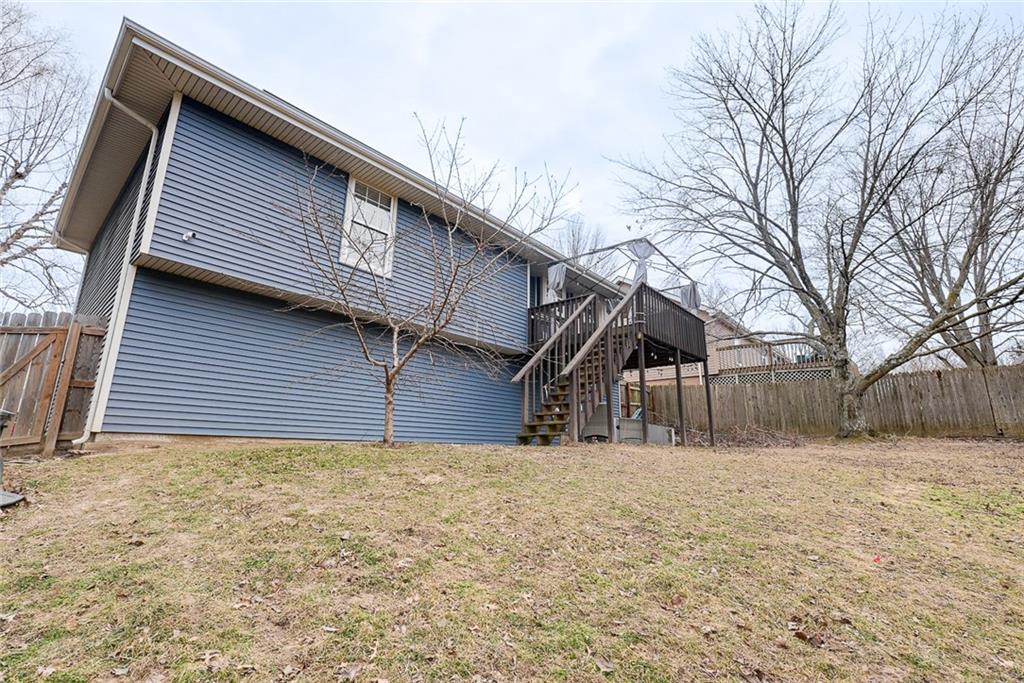 Welcome HOME to this spacious and sun-filled 3-bedroom, 2.5-bath beauty tucked away on a quiet cul-de-sac in the highly sought-after Blue Springs School District. Designed for both comfort and connection, this home features FRESH PAINT and thoughtfully laid-out main level with laundry conveniently located near all bedrooms and a generous primary suite complete with an en-suite bath and ample closet space. All bedrooms are well sized, offering room to grow, relax, and recharge. Natural light pours through large windows throughout the home, creating a bright and inviting atmosphere from morning to evening. The spacious dining room flows seamlessly into the light-filled living room and warm, welcoming kitchen, making it ideal for lively family gatherings and unforgettable conversations.The large high deck adds even more space for family and friends to enjoy the outdoors. Downstairs, enjoy a large second family room, a dedicated home office, and a walkout to the expansive, fully fenced backyard—perfect for entertaining, playtime, or peaceful evenings outdoors. Step outside to the large covered patio, extending your living space even further. The large fenced in yard gives ample space for kids and pets to safely run. This HOME is as SMART as it is Beautiful, featuring 15 solar panels for incredibly low electric bills and a reverse osmosis water system delivering clean, crisp, great-tasting water every day, not to mention some updates and fresh paint through the home. Location is hard to beat—walking distance to the elementary school, just a block or two from multiple parks and soccer fields and walking trails and minutes from dining, shopping, and entertainment, and quick highway access while still feeling tucked away in a hidden neighborhood. A RARE blend of space, efficiency, location, and lifestyle—this is the kind of home where MEMORIES are made and futures are built. COME CHECK IT OUT TODAY!!!