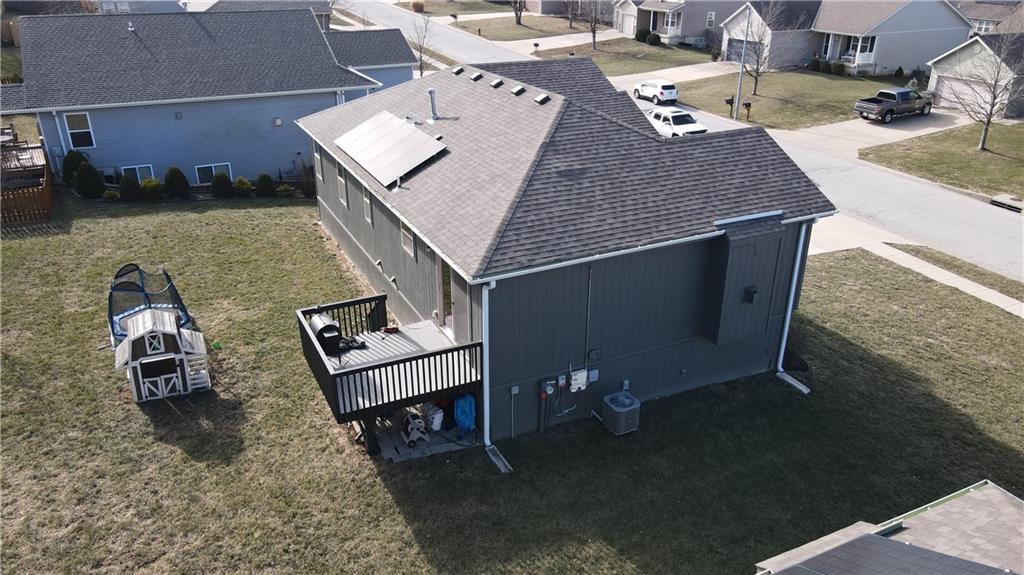 Located in the Emerson Park Subdivision, this 4 bed, 3 bath home in Belton School District brings value that surrounding homes don't offer! This split entry home has nearly 2,100 square feet of finished living space, 4 bedrooms, 3 full bathrooms, a 2-car garage, plus the sale of this home includes a $30,000 solar charging system (most recent electric bill was only $19.26) and a $5,000 video surveillance, door access, and security system. On top of all of that, the residential lot immediately behind this home is a small acreage lot, meaning that you have a layer of privacy right out the back door! Built in 2021, the location of this home makes it quick to reach MO-58 or I-49 in just a few minutes.