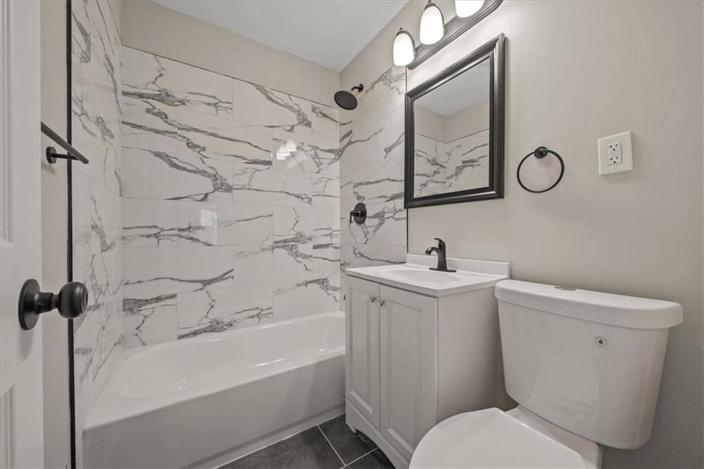 Well-improved 1.5-story home offering 4 bedrooms with all-new carpet and modern ceiling fans throughout. The kitchen features brand-new cabinetry, with a stove, dishwasher, and microwave to be installed prior to closing. The main level includes convenient laundry and a half bath, while bathrooms showcase custom tile work and new vanities. The basement offers partially finished ceilings, providing flexible space for storage, recreation, or future finishing. Significant exterior improvements include vinyl siding, new vinyl windows, and a new roof and gutters. A detached two-car garage and ample parking complete this move-in-ready home.