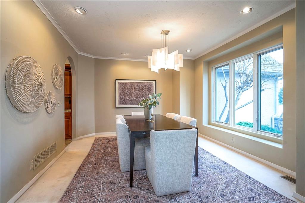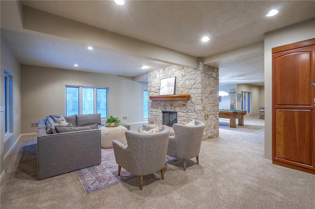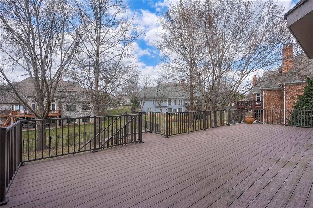 Welcome to this expansive and well-built 1.5-story home offering 4,224 square feet on the main & second floors, plus a large finished walkout basement with 1,500 finished square feet. The home sits on a beautifully landscaped lot in a prime Overland Park location. You’re greeted through a leaded glass front door from a charming courtyard into an impressive two-story entry, where a nearby three-story fireplace anchors the home & immediately showcases its grand scale. The main level features a spacious living room with wood beams, a fireplace & abundant natural light. A large formal dining room easily accommodates entertaining on a grand scale. The kitchen boasts several high-end Wolf appliances & a four-burner gas stove with a griddle. Just off the kitchen is an exceptionally large laundry room. The main-floor primary suite features a vaulted ceiling, generous closet space, and an en-suite bath with separate tub and shower and extensive storage. The second floor offers three very large bedrooms, excellent closets, and two and one-half bathrooms. The half bathroom could potentially become a second laundry room. There is also a bonus room featuring a wet bar, a fireplace and a large vaulted ceiling. It has the potential to serve as a second primary suite. The finished walkout basement is designed for entertaining, with a large bar, multiple gathering areas, wine storage, an additional bedroom and full bath, and access to a spacious patio. There is also significant unfinished space. Additional highlights include a huge deck overlooking the private lot, mature landscaping, a deep side-entry garage well-suited for large SUVs, trucks, and storage, zoned HVAC, partial HVAC replacement, and a major investment in several newer windows. This home offers a rare opportunity—exceptional bones, generous proportions, and a premier location with excellent schools, quick highway access, and nearby shopping and dining—ready for the next owner to bring their design vision to life.