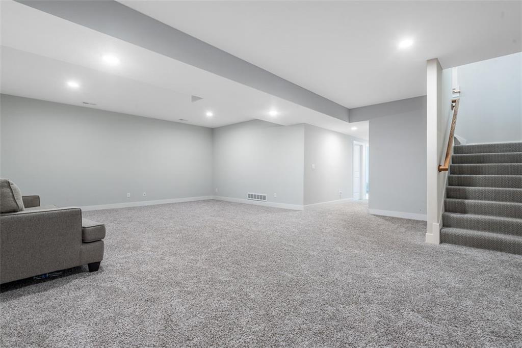 Beautiful, large bedrooms 4 + 1 (non-conforming) = 5 possible bedrooms, 3 bathrooms, Reverse 1.5-story home with 2 walk-in closets in Primary Bedroom! The open main level seamlessly connects the kitchen, dining, and living areas, showcasing hardwood floors, vaulted ceilings, updated trim, and abundant natural light. The gourmet kitchen is a chef’s dream, featuring quartz countertops, tile backsplash, gas cooktop, large walk-in pantry, and generous workspace—perfect for entertaining. Family Room stuns with a floor-to-ceiling fireplace, vaulted ceilings accented by wood box beams, designer ceiling fan, and custom window coverings. An office tucked to the side offers the perfect private workspace. The Primary Suite is a true retreat with vaulted ceilings, a luxurious stand-alone soaker tub, separate tiled shower with dual shower heads, two vanities, and again TWO walk-in closets. The main-floor laundry offers convenient direct access from the primary closet. The finished lower level provides a spacious rec room, already stubbed for a future bar, along with three additional bedrooms (one non-conforming), a full bath, and plenty of storage space. Relax and enjoy your morning coffee on the screened-in covered deck. Brookwood Farms is an active, social community offering amenities for all ages, including a community pool and cabana, playground, fishing pond, and walking trails. Come see everything this beautiful home—and Brookwood Farms—has to offer!