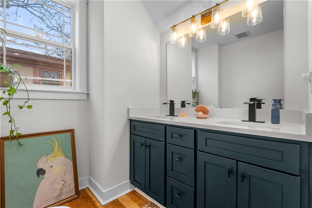Welcome home to one of the most sought out neighborhoods walking distance to the 39th street district and recently completely renovated. Original character still intact with stunning blond refinished hardwood floors throughout, brick accents from original brick walls, and open kitchen with all the bells and whistles. Corner lot with plenty of room to build a garage or a pad for off street parking. Luxury bathrooms with designer tile choices and double vanities. Two primary en suites options. Flex office space that lofts up to a huge primary suite on the third floor with separate hvac system and large walk in shower. Big deck for entertaining. Rare walk in pantry for extra space. Built in bar with a double fireplace experience. Laundry room on the second level. Front porch for enjoying the area. Updated electrical throughout and newer roof. Seller is giving a credit to the buyer to bring back a parking pad off street.