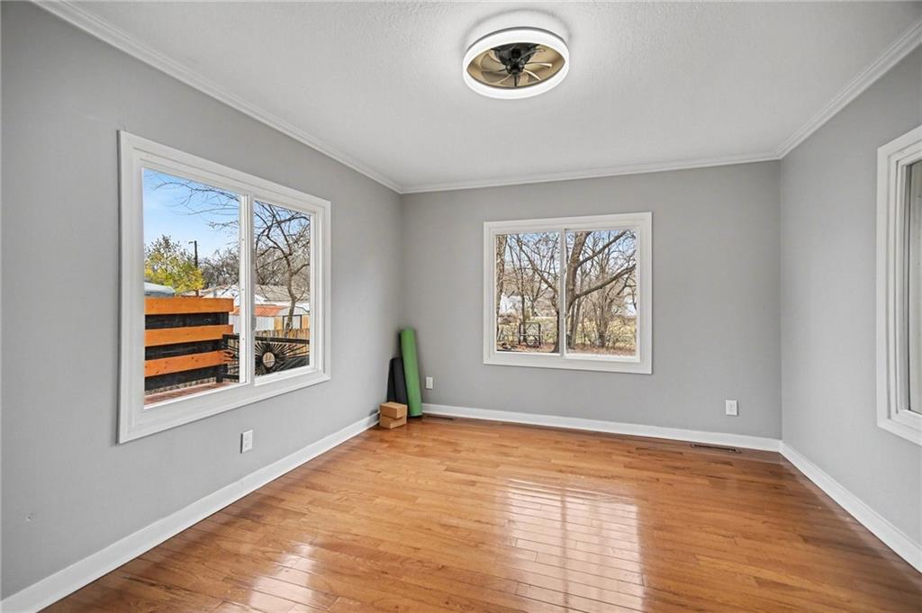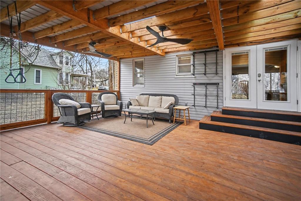 Wow! Location, location, location! Enjoy this adorable 3 bed, 2 bath, ranch home in downtown Lee's Summit a short distance from the Farmer's Market. This home offers approximately 1,918 square feet. 1/4 acre. Beautiful hardwood floors guide you through an inviting layout, starting with a cozy living room featuring a stunning marble gas fireplace with a remote. The primary ensuite is a true standout, boasting a zero-entry shower with ceramic tile and double vanities. Need a quiet space? The bonus room on the main level is perfect for a home office and overlooks the yard. The galley kitchen features true craftsman hardwood cabinets, a new Bosch dishwasher, and overlooks the yard. The eat-in kitchen features French doors that open to the back deck. Step outside to your private oasis—an expansive 700 sq. ft. deck (500 sq. ft. covered!) overlooking a large, fenced yard. Under the deck is wiring for a hot tub & the deck has been reinforced to support one. With a NEW HVAC (2025), a 10-year-old roof, a 200-amp electrical panel, gutter guards and laundry conveniently located on the main level, this move-in-ready gem in the heart of Lee’s Summit won't last long! Schedule your showing today. March 31st Elite Fence will finish fencing the yard.