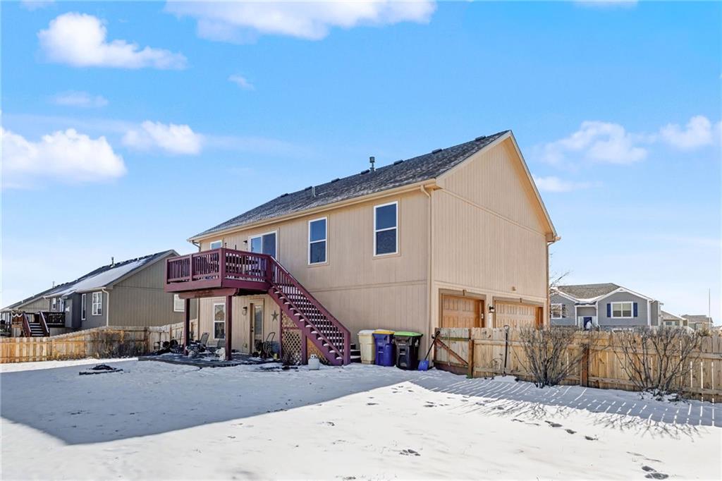 Step inside 300 NE 192nd Terrace! This inviting home offers a functional layout with comfortable living spaces throughout. The main level features a spacious living room with a cozy fireplace, perfect for relaxing or entertaining. Upstairs you'll find the open kitchen offering ample cabinet storage, generous counter space, a walk-in pantry and a convenient breakfast bar flowing seamlessly into the dining area. Neutral finishes and abundant natural light create a warm, welcoming atmosphere. Down the hall you’ll find three comfortable bedrooms, including a roomy primary suite with a private ensuite bathroom. Additional bedrooms are well-sized and share a full hall bath. The laundry area is located conveniently on the main level as well, making the dreaded laundry piles more manageable! The finished lower-level provides additional living space with walk-out access to the backyard, ideal for gatherings or quiet evenings outdoors. Enjoy the elevated deck overlooking the newly fenced yard—perfect for grilling, relaxing, or entertaining. With a 3-car garage, new roof, ample storage, and a desirable location close to the highly sought after Smithville School District, shopping, and amenities, this home checks all the boxes. Don’t miss your opportunity to view this one for yourself!