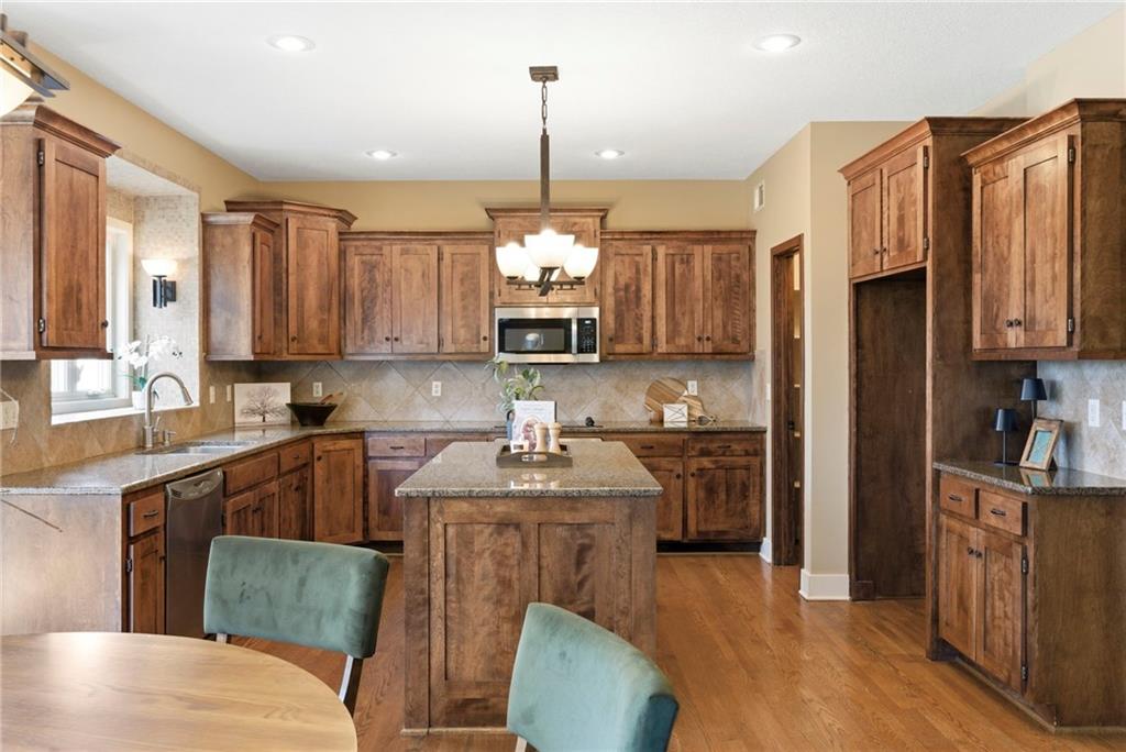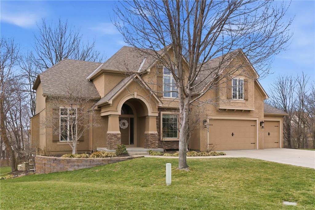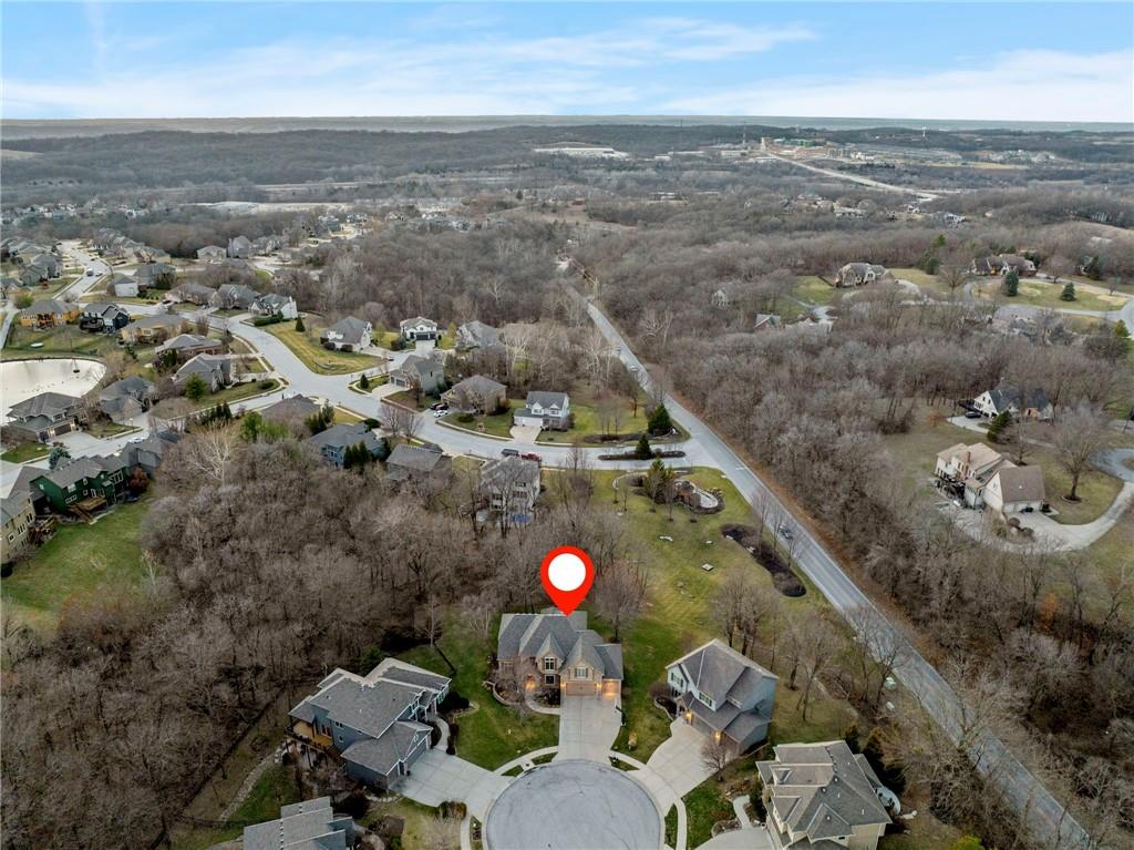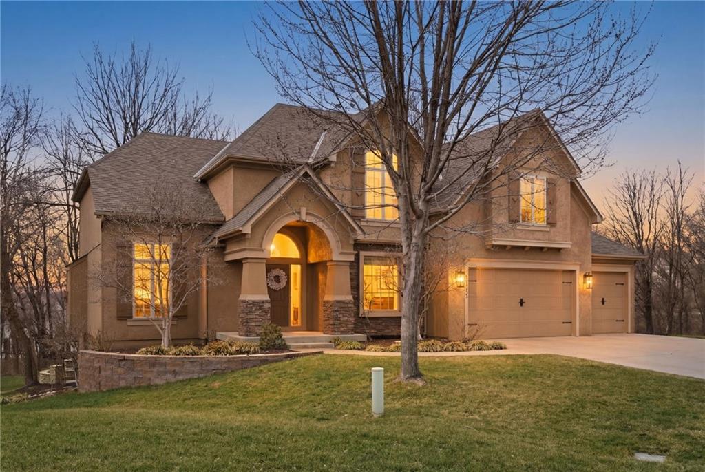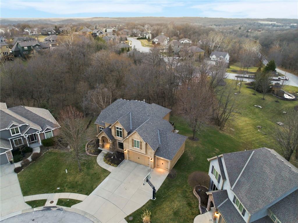 Welcome to this stunning former model home in the sought-after Thousand Oaks subdivision. Crafted by Shawn Land Builders & meticulously maintained by the original owners for nearly 20 years, this refined 4-bedroom, 4.5-bath residence offers just under 4300 sq. ft. of brilliantly designed space. Its oversized lot at the end of a cul-de-sac backs to protected green space, with mature trees surrounding the backyard to provide privacy and a serene setting. From the grand two-story foyer to the expansive lower level primed for entertaining, every detail reflects exceptional living. Highlights include a stylish office, a formal dining room, and a gorgeous living room complemented by a gas fireplace with a stone facade, built-ins, and picturesque windows framing serene views. The kitchen is beautifully appointed with a substantial island, granite countertops, custom cabinetry, GE appliances, a walk-in pantry, & a bright breakfast room. Just beyond, a covered deck becomes an inviting spot for coffee or to unwind with dinner and drinks. Upstairs, the primary suite impresses with double-tray ceilings, a spa-like bath with a jetted tub & shower, & a giant walk-in closet. One secondary bedroom has a private ensuite, while the other two share a Jack-and-Jill bath. Downstairs is an entertainer’s dream, featuring a full wet bar with beverage cooler and fridge hookup, microwave, dishwasher, a huge recreational area, 2 bonus rooms, full bath & storage. Outside, a sensational stone patio, bench, and wood-burning fire pit await quiet evenings under the stars. A 3-car garage has an organization system and a utility sink. Plus, a brand-new roof & 1-year Home Warranty adds peace of mind. Neighborhood amenities encompass scenic lakes, trails, pools, clubhouse, playgrounds, tennis courts, a swim team & social events. With luxury, comfort, and a prime location near Parkville’s shops, dining, entertainment, and top-rated Park Hill schools, this designer home has it all!