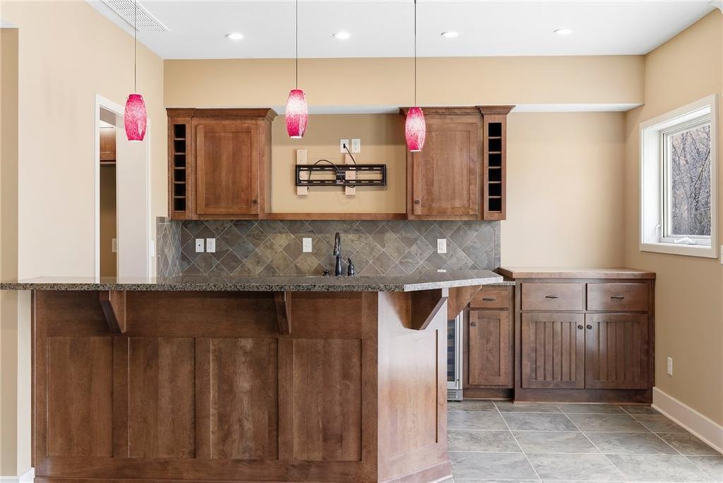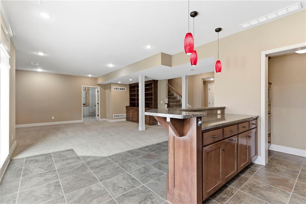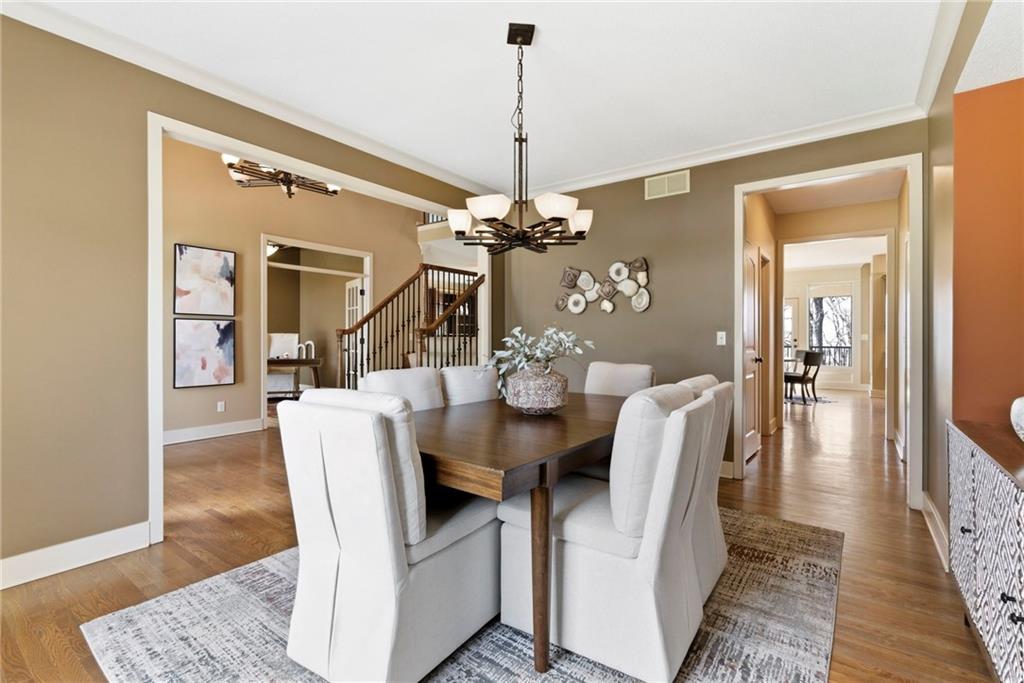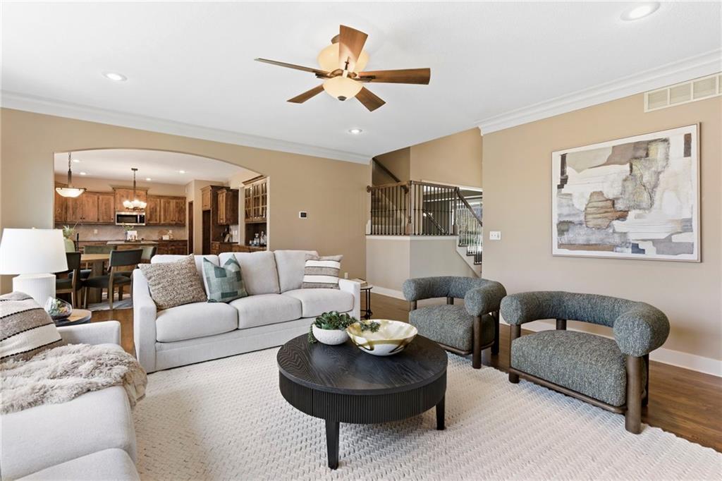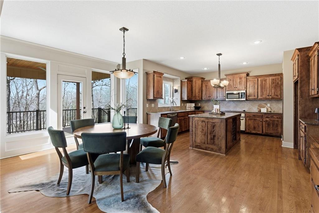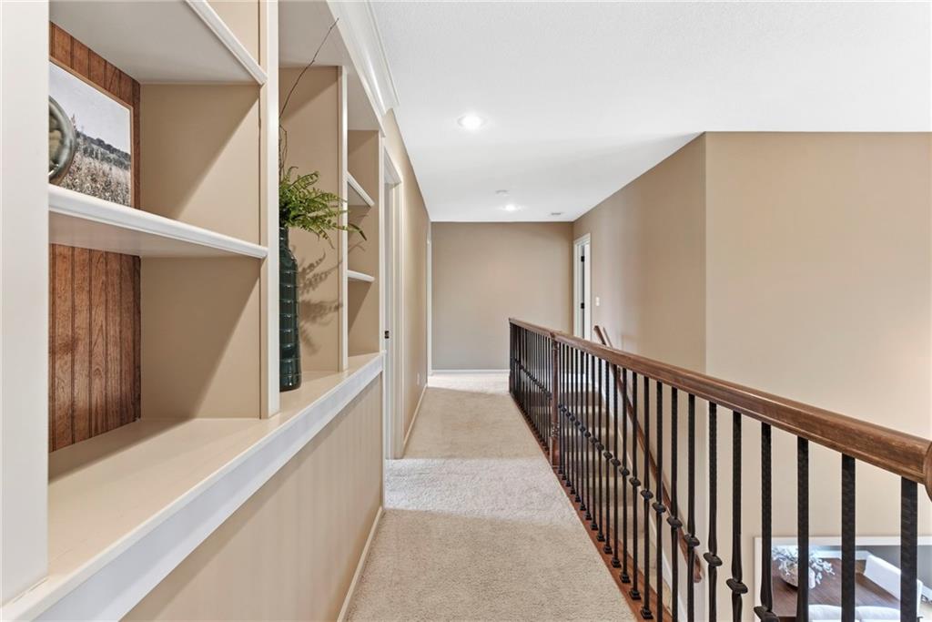 Welcome to this stunning former model home in the sought-after Thousand Oaks subdivision. Crafted by Shawn Land Builders & meticulously maintained by the original owners for nearly 20 years, this refined 4-bedroom, 4.5-bath residence offers just under 4300 sq. ft. of brilliantly designed space. Its oversized lot at the end of a cul-de-sac backs to protected green space, with mature trees surrounding the backyard to provide privacy and a serene setting. From the grand two-story foyer to the expansive lower level primed for entertaining, every detail reflects exceptional living. Highlights include a stylish office, a formal dining room, and a gorgeous living room complemented by a gas fireplace with a stone facade, built-ins, and picturesque windows framing serene views. The kitchen is beautifully appointed with a substantial island, granite countertops, custom cabinetry, GE appliances, a walk-in pantry, & a bright breakfast room. Just beyond, a covered deck becomes an inviting spot for coffee or to unwind with dinner and drinks. Upstairs, the primary suite impresses with double-tray ceilings, a spa-like bath with a jetted tub & shower, & a giant walk-in closet. One secondary bedroom has a private ensuite, while the other two share a Jack-and-Jill bath. Downstairs is an entertainer’s dream, featuring a full wet bar with beverage cooler and fridge hookup, microwave, dishwasher, a huge recreational area, 2 bonus rooms, full bath & storage. Outside, a sensational stone patio, bench, and wood-burning fire pit await quiet evenings under the stars. A 3-car garage has an organization system and a utility sink. Plus, a brand-new roof & 1-year Home Warranty adds peace of mind. Neighborhood amenities encompass scenic lakes, trails, pools, clubhouse, playgrounds, tennis courts, a swim team & social events. With luxury, comfort, and a prime location near Parkville’s shops, dining, entertainment, and top-rated Park Hill schools, this designer home has it all!