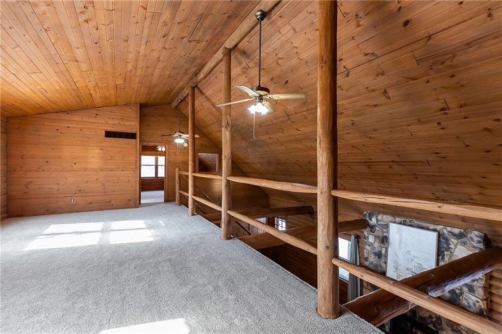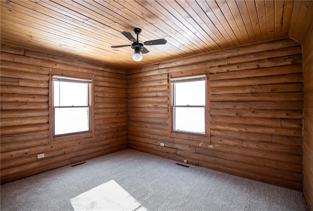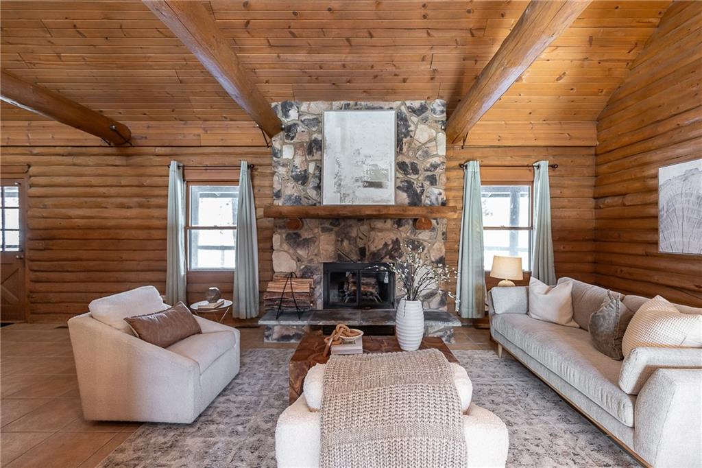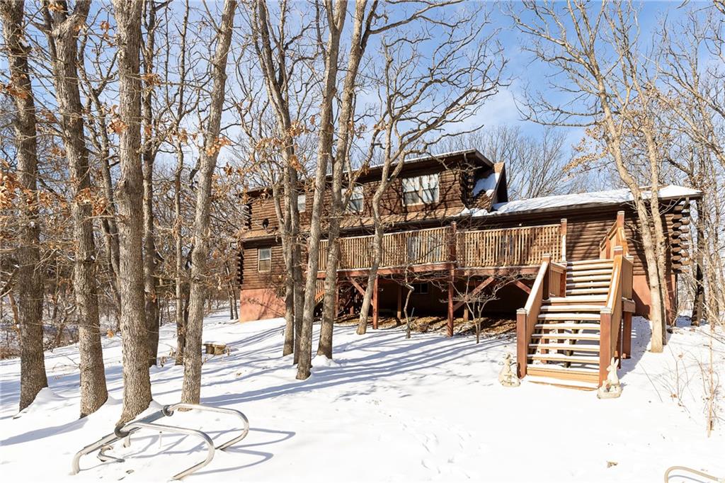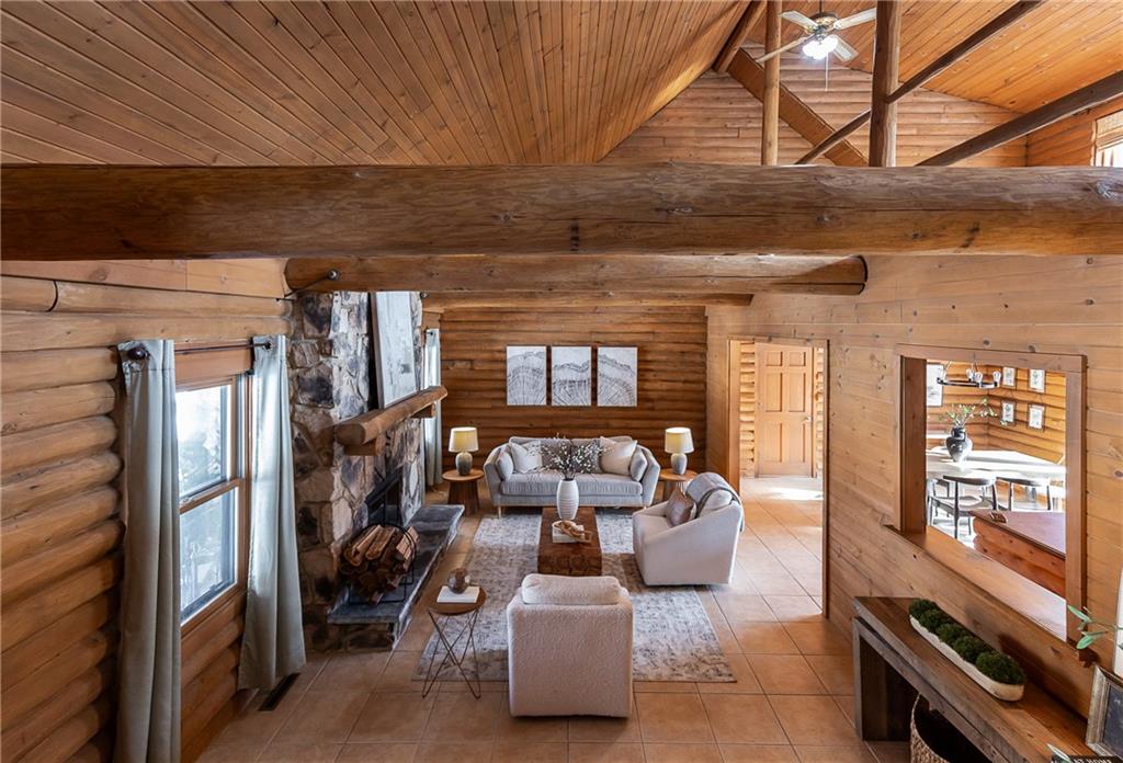 Set on over 4.39 private acres, this inviting 3 bedroom, 2 bath log cabin blends rustic charm with comfortable living. Surrounded by nature, the property offers a peaceful retreat ideal for full-time residence, a weekend escape, or a vacation rental. Warm wood interiors, classic log cabin construction, and natural light create a cozy welcoming atmosphere. Enjoy a private pool perfect for summer relaxation. The expansive basement is already stubbed for a bathroom and the garage floor is suspended for additional storage. Don't miss this unique property!