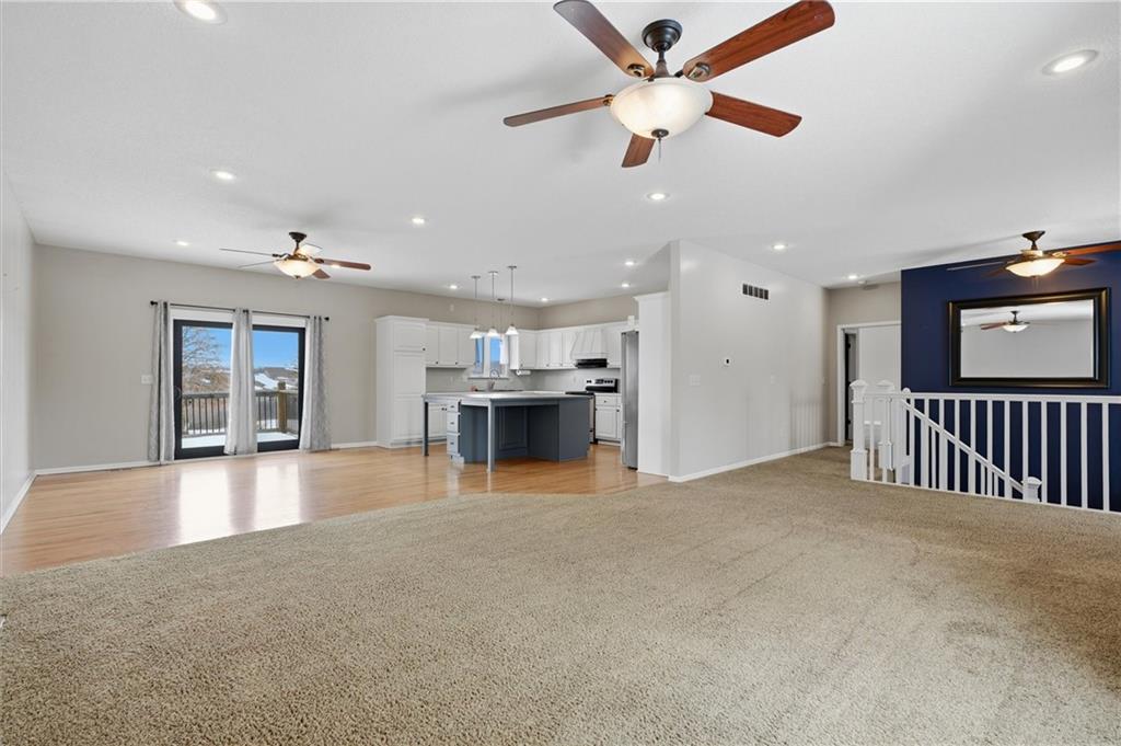 Spacious 4 bed, 2.5 bath, 3,400 sq ft 1.5-story home in the desirable Oaks of Edgewood. Hardwood floors welcome you into an oversized carpeted living/family area with a large window for natural light. The main-level kitchen features a large island, stainless steel appliances, pantry, kitchen/dining combo, and deck access. Half bath conveniently located on the main level. The primary suite, also located on the main level, is a true retreat with a fireplace, private deck, walk-in closet, attached laundry, and a double-door entry to the bathroom with double sinks, soaking tub, and tiled walk-in shower. Lower-level living quarters include three bedrooms, a kitchen, full bath, additional laundry, and abundant storage. Patio and fenced backyard complete the space. Additional highlights: solid-wood doors throughout, a 3-car garage, and ample basement storage. Grain Valley School District. Ready for its new owners!