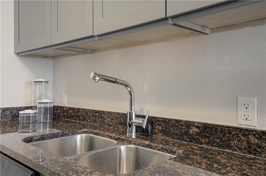 DONT MISS THIS! Welcome to this updated 1-bedroom, 1-bathroom condo at the Manhattan Condominium. This clean, move-in-ready unit features thoughtful updates that make it comfortable and appealing. Inside you'll find fresh LVP flooring throughout the unit, complemented by new crown molding, updated light fixtures, and new custom blinds. The real star of this home is the luxurious, spa-like bathroom with a stunning walk-in shower featuring beautiful tile work, modern fixtures, and a rain showerhead—a true retreat! The kitchen has been refreshed with new upper cabinets and includes a new refrigerator and microwave. The primary bedroom features a convenient laundry closet with a Bosch washer and dryer—no shared laundry facilities! Unit is being sold partially furnished, including a bed, dresser, futon in the living room, dining table with 4 chairs, kitchen utensils and cookware, living room TV and stand—perfect for those looking for a turnkey living situation or investment property! This well-maintained condo offers clean, comfortable living with some great updates where it counts. Perfect for anyone looking for a simple, functional space with one truly beautiful feature! Manhattan Condominium offers resort-style living with incredible amenities: a penthouse indoor pool, movie theatre, expansive gym with YouTubeTV, WiFi throughout the building, entertainment and grilling areas, elegant lobby, beautician and coffee shop on-site, and 24-hour maintenance services. There's a dog park nearby for your furry friends! Embrace hassle-free living with utilities, trash, and recycling included in HOA fees. Enjoy the security and convenience of a private garage with an assigned parking spot and additional storage unit. Long-term leasing is allowed, making this an excellent opportunity for investors or buyers seeking rental income potential.