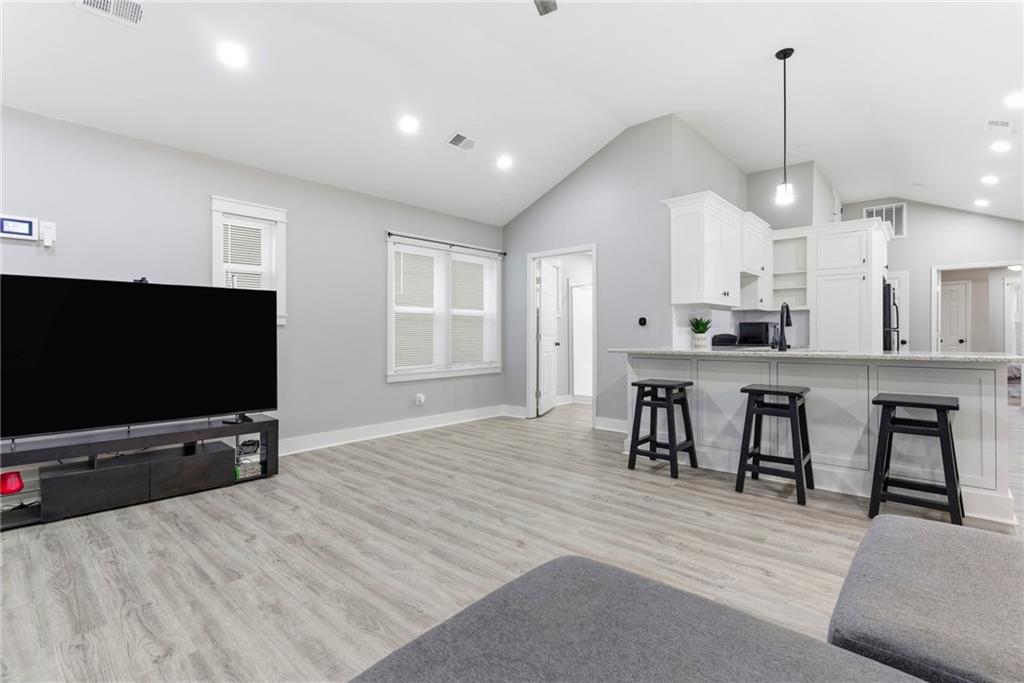 This adorable bungalow lives far larger than its footprint thanks to an open, well-designed floor plan. Step inside to soaring ceilings and a spacious living area that flows seamlessly into the dining and kitchen spaces. Durable LVP flooring runs throughout the main living areas and bathrooms, with cozy carpet in the bedrooms. The custom kitchen features beautiful countertops, abundant cabinetry, and newer appliances. Completely updated from top to bottom, this move-in-ready gem is a must-see—perfect for an owner-occupant or as a turnkey investment opportunity. Don't miss this one, tour it today!