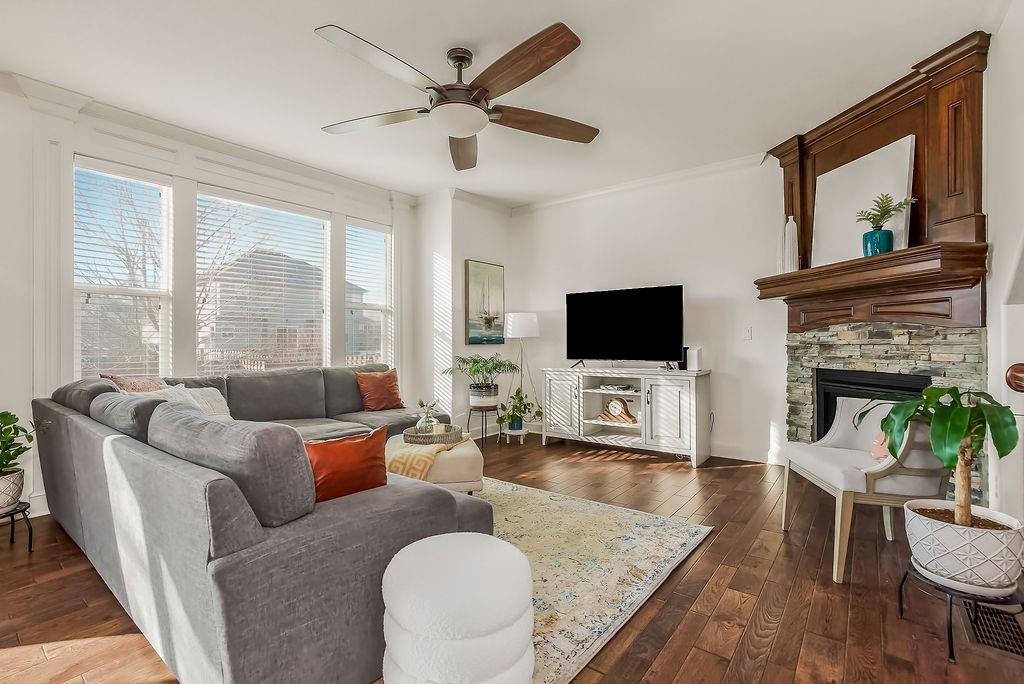 NEW PRICE! Immaculately maintained 4-bedroom, 3.5-bath home only 10 years old and truly shows like new! Fresh interior and exterior paint completed within the last few years adds to the crisp, move-in-ready appeal. The open floor plan features gorgeous hardwood floors throughout the main level and offers both a formal living room or flexible space, plus a spacious family room with fireplace that flows seamlessly into the dining area and kitchen—perfect for everyday living and entertaining. The well-designed kitchen includes a large walk-in pantry, gas range and newer dishwasher and microwave (within the last 4 years). A convenient drop zone just inside the garage entry adds everyday functionality. Major updates include a new A/C condenser and sump pump in 2025. The basement includes an egress window and offers an incredible amount of storage or the perfect opportunity for future finishing. Outside, enjoy beautifully landscaped grounds with low-maintenance perennials, a fully fenced backyard, and an in-ground sprinkler system. This home has been lovingly cared for and offers the ideal blend of style, comfort, and modern updates.