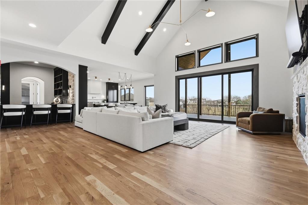 AMAZING NEW 1 ½ story Estate home in highly desired Estates at Chapel Ridge on 1.14 acres! Park Hill School District ! Everything you would want for luxury and style with attention to detail! This 5 bedroom / 5 1/2 bath contemporary home has a 4 car garage with additional #5 in the lower level! Incredible entry features 8' metal pivot front door ! Wood floors thru out the main level. 2nd bedroom suite currently an office which transcends you toward the towering great room with beamed ceilings and fireplace which is a work of art with stylish shelving to showcase your artwork and keepsakes! Upgraded sliding door to the covered deck and fireplace w/ an entertainment area to watch your favorite sports team! Custom designed stairs to the large flat backyard and patio. Gourmet kitchen has quartz countertops and waterfall edge on the oversized island. Cabinet space galore! Side by side refrigerator / freezer, 6 burner range & double oven, in-drawer microwave, farm sink w/ instant hot water. The back pantry has double refrigerator drawers with plentiful shelving, sink and coffee bar space. Enjoy the main level wet bar with ice maker, double wine / beverage refrigerators and perfect entertaining space. Primary Suite is a place to relax in front of the linear fireplace and spa like bath with heated tile floors, double vanity, soaking tub and spacious walk-in shower. You will love the incredibly designed primary closet with its own laundry, special lighting and pull down racks. 2nd floor has 3 ensuites + 2nd office & 2nd laundry. Walk out unfinished Lower level has so much potential to design your own golf simulator space, 6th bedroom suite ...whatever you need ! Excavated area under the NE 2 car garage with an addition garage door to allow access for golf cart storage! The entire 1.14 acres have sprinkler system and sodded. Over the top landscaping ! 3 HVAC systems ...there are so many incredible extras in this home ... have to see it to capture the beauty and decor !