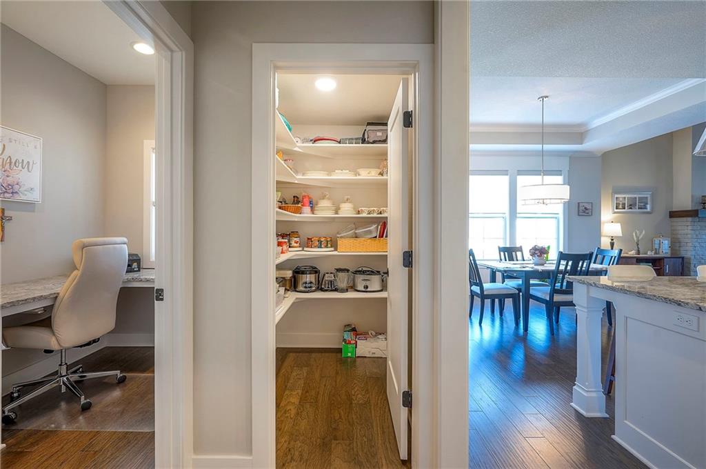 WHY WAIT TO BUILD? Shows like a model home! Enjoy maintenance free living in this quality Lambie home located in the desirable town of Lenexa. Designed with an Open floorplan and abundant windows, the home is filled with natural light throughout. The Kitchen is both stylish and functional, featuring a spacious island, SS Appliances, Gas Cook top, ample cabinetry and counter space, and a large walk-in pantry. A convenient nook off of the kitchen provides the perfect space for a home office or planning area. The warm, inviting Great Room centers around a cozy fireplace, ideal for relaxing evenings. The spacious primary suite offers a private bathroom and connects to walk-in closet and laundry room for everyday convenience. A mud-room area with built-ins and half bathroom add to the functional floor plan of this home. All of the rooms you need for main level living! The finished lower level of this home includes a generous family room, two additional bedrooms, both with walk-in closets, a full bathroom and a huge walk-in closet in hallway. There is also ample unfinished space for storage. Lots of extras when built, including crown molding and upgraded finishes throughout. These original owners have cared for this home so well, that you will think that it is currently the model home! The Lenexa City Center, with its modern walkable downtown area features restaurants, library, Public Market, Rec Center, seasonal concerts, farmers market, and more is located just 3.5 miles from this home. You will love living in Lenexa! Compare square footage to new.