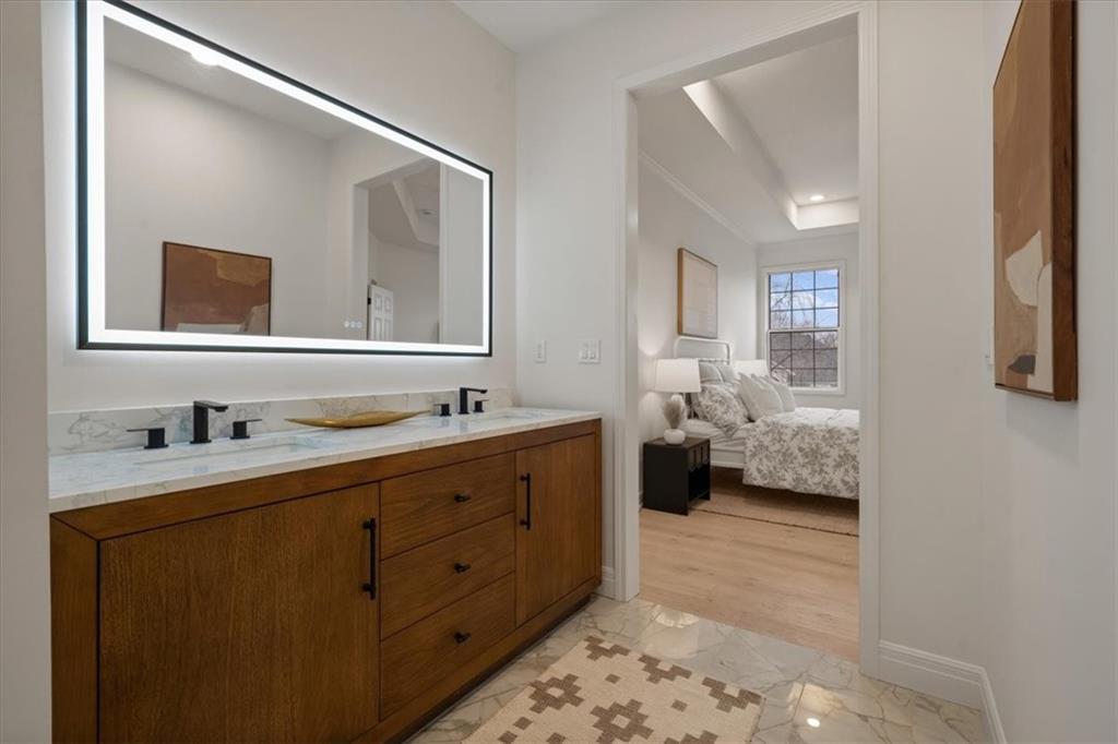 Welcome to Heatherwood—one of the most sought-after maintenance-provided villa communities in South Overland Park! This stand-alone villa offers true low-maintenance living with reasonable HOA dues that cover trash, recycling, snow removal, and even exterior house painting. Better than new, this home has been fully remodeled from top to bottom with all major mechanicals already addressed. Recent upgrades include a new limited-lifetime architectural shingle roof, new furnace, and new A/C with coil. The stunning kitchen features high-end cabinetry with soft-close drawers and doors, a deep pantry, granite countertops and splash, a premium range with air-fry and Wi-Fi capabilities, complete with a new Bosch dishwasher. All bathrooms have been beautifully updated with contemporary tile and modern finishes. The spacious primary suite boasts dual vanities, a lighted mirror, a separate toilet room, a large walk-in closet, and an oversized walk-in shower that may just be the largest in the neighborhood. New engineered hardwood flooring flows throughout the main level, creating a cohesive and upscale feel. The finished basement adds two additional bedrooms and generous recreation space—perfect for guests, hobbies, or entertaining. Step outside to enjoy the brand-new oversized deck overlooking the backyard. The majority of windows have already been replaced, with the remaining scheduled for installation soon. This is a rare opportunity to own a truly turnkey villa in an exceptional South Overland Park location—modern updates, major expenses already handled, and maintenance-free living all in one.