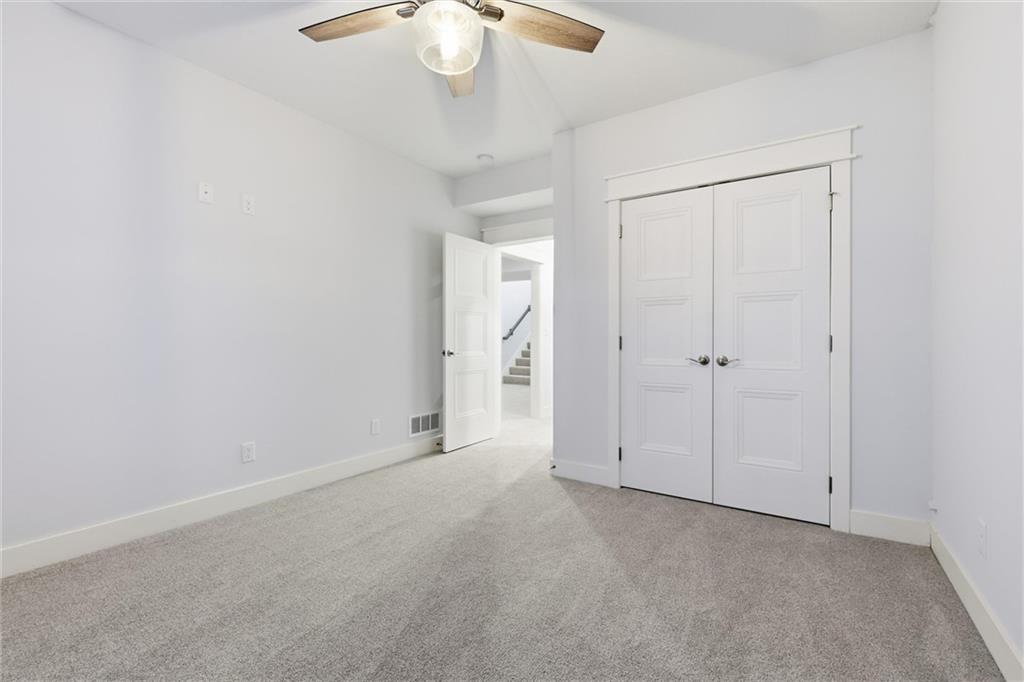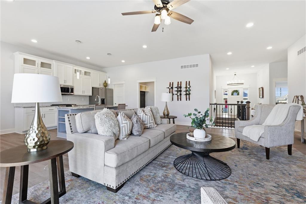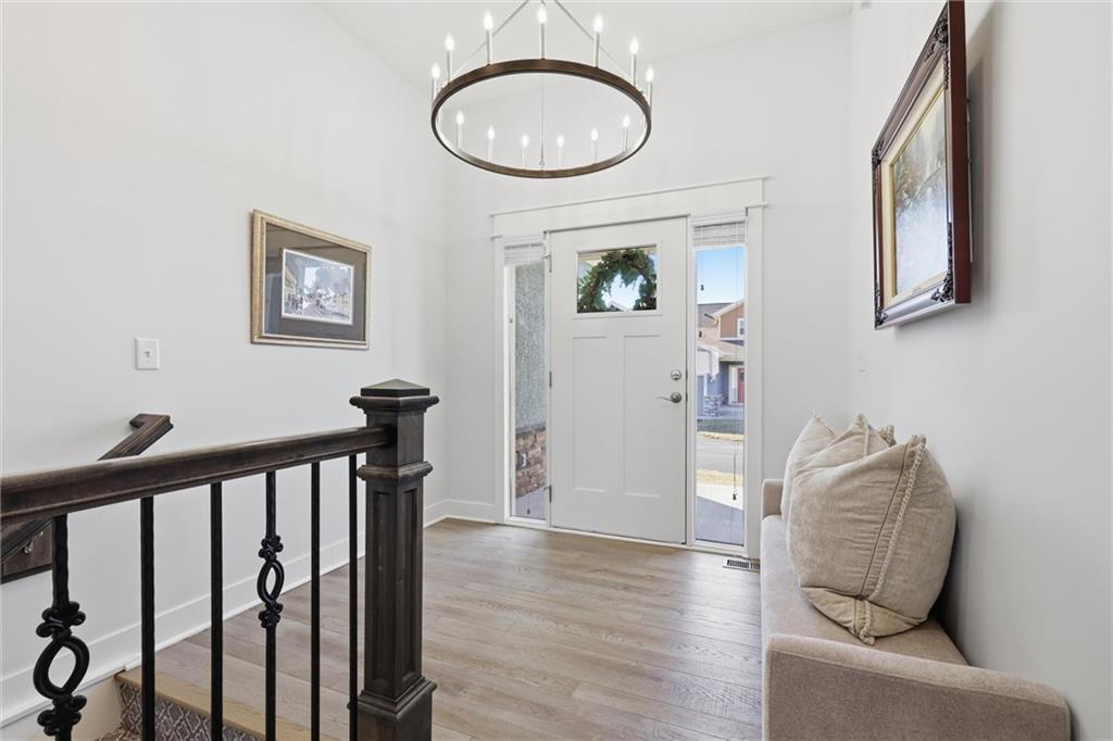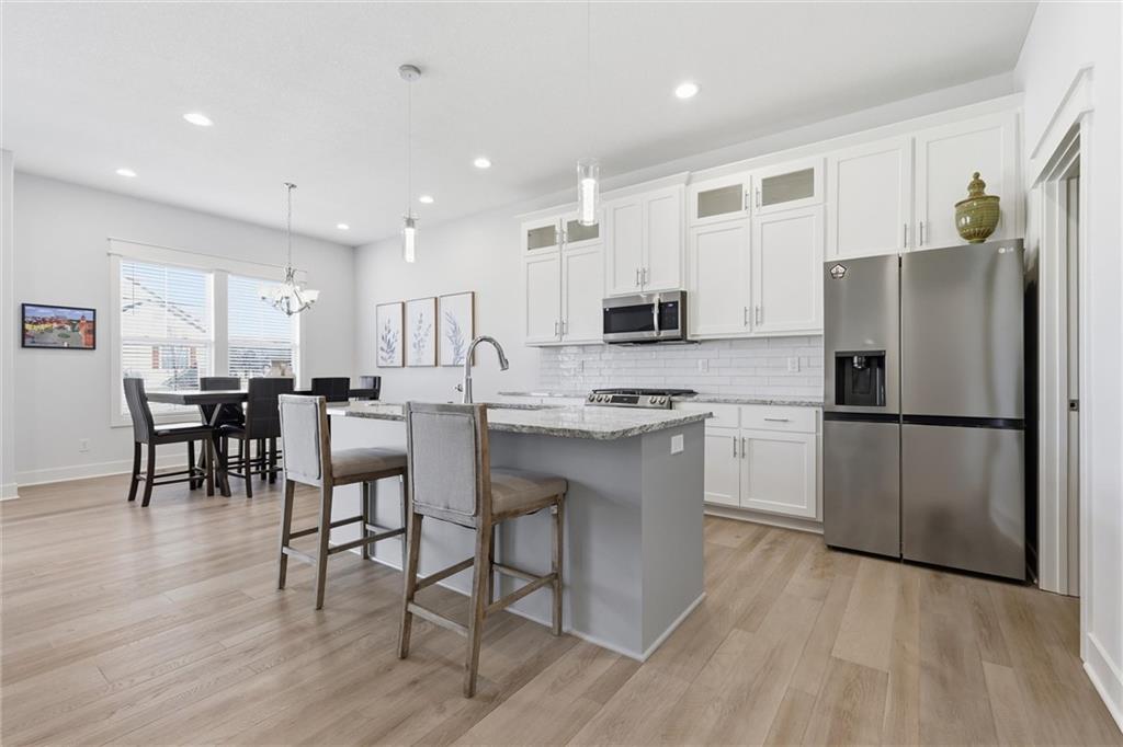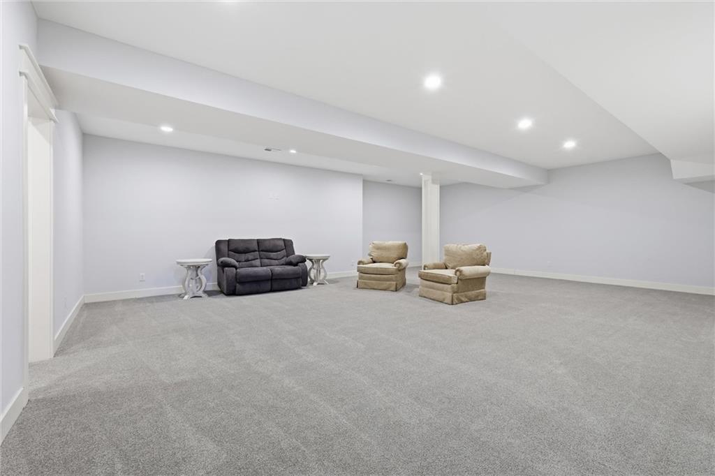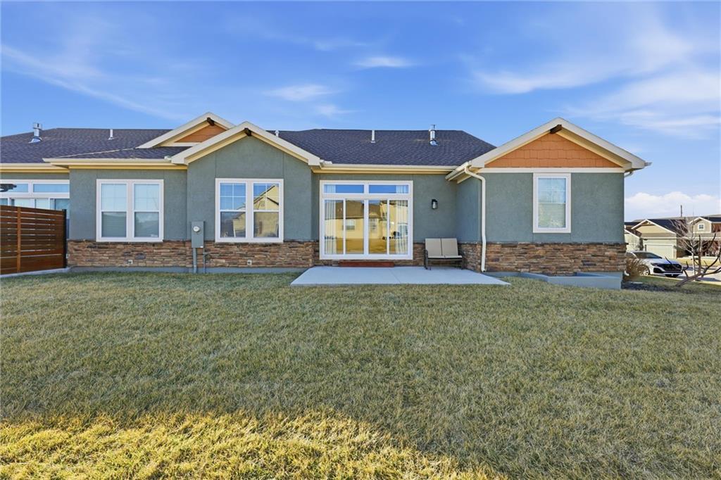 Completed in 2023, this light-filled, maintenance-provided reverse 1.5-story villa shows like new and offers nearly 3,000 square feet of living space. The main level features two bedrooms, two full bathrooms, and convenient main-floor laundry. The finished lower level includes two additional bedrooms, a third full bathroom, and an expansive recreation room, providing excellent space for entertaining or guest accommodations. Beautiful hardwood flooring extends throughout the main living areas, complemented by tile flooring in all bathrooms and the laundry room. The spacious living room showcases a stunning floor-to-ceiling stone fireplace and flows seamlessly into the kitchen, which features granite countertops, custom cabinetry, stainless steel appliances including a gas range and refrigerator, a walk-in pantry, and a large center island with built-in shelving. The primary ensuite offers gorgeous tile, dual vanities, and a large shower, while impressively sized walk-in closets provide abundant storage. The exterior showcases stucco with stone wainscoting surrounding the entire home, delivering exceptional curb appeal. Community amenities include a swimming pool, play area, walking trails, and pickleball court. Conveniently located near Cedar Niles Park, shopping, dining, and easy highway access just minutes away, this exclusive maintenance-provided villa community offers a carefree lifestyle.