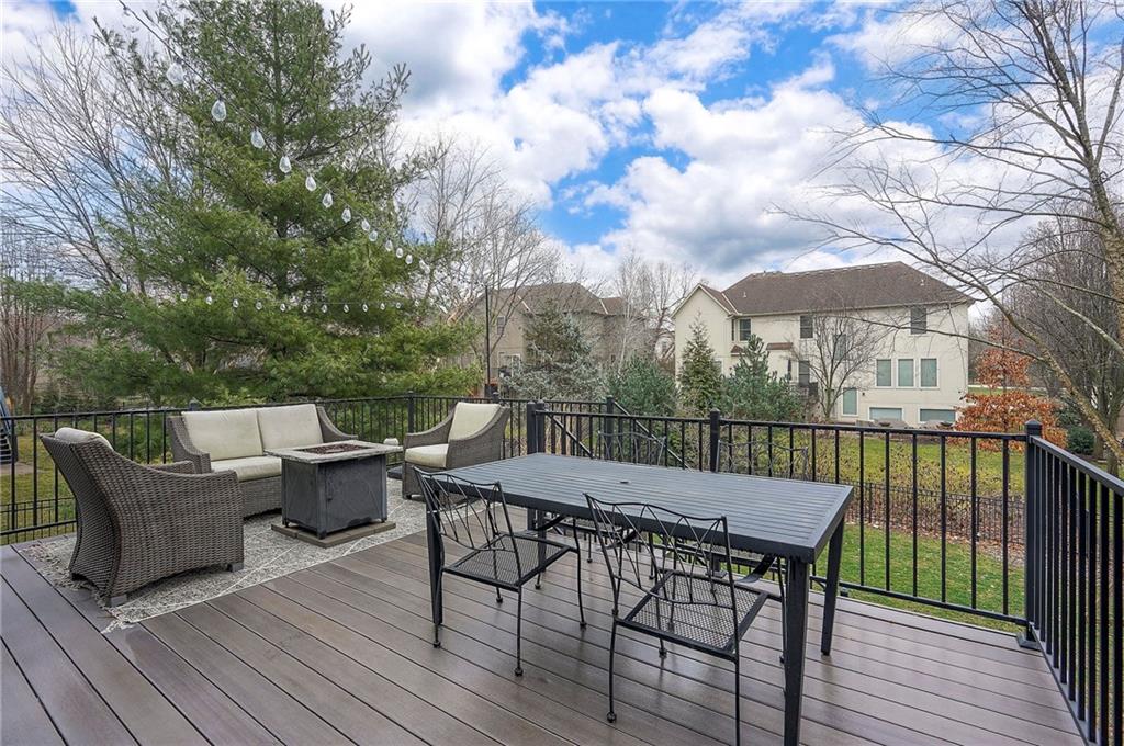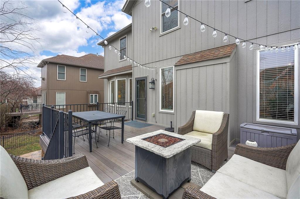 Stately 2 story in BLUE VALLEY SCHOOL DISTRICT offering timeless curb appeal, generous space, and thoughtful updates. The main floor offers hardwoods throughout with a terrific flow for everyday living and entertaining. Enter into a 2 story foyer with french doors leading to a quiet, private office on one side, and smart formal dining on the other. Walk past a split front/back staircase to a great room with a wall of windows, and 1 of 4 gas fireplaces. The large kitchen has a huge granite island and seamless flow into a spacious hearth room with fireplace and breakfast nook. From here, you can walk right out to a newer composite deck. The 2nd floor expansive primary bedroom has a sitting area with fireplace, spa bath and walk in closet. 3 additional bedrooms, 2 baths and a laundry room round out the top floor. The walkout finished basement comes with a full bar, large rec area, fireplace, and 2 storage rooms. Outside is a stamped concrete patio perfect for a fire pit or basketball hoop, and a generous fenced in backyard. Newer HVAC! This is a wonderful family home in a terrific community!