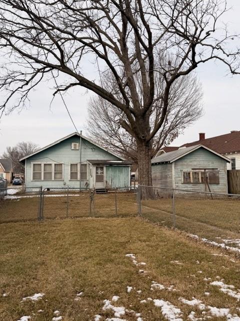 Great location, close to the elementary school and hospital. Bungalow 2 bedroom 1 bath home, large living room and open kitchen area. Fenced backyard with detached garage. Great potential for a home or an investment property.
