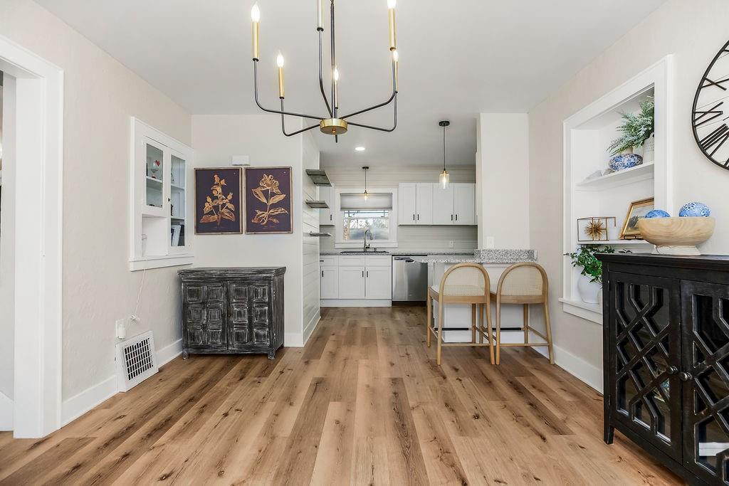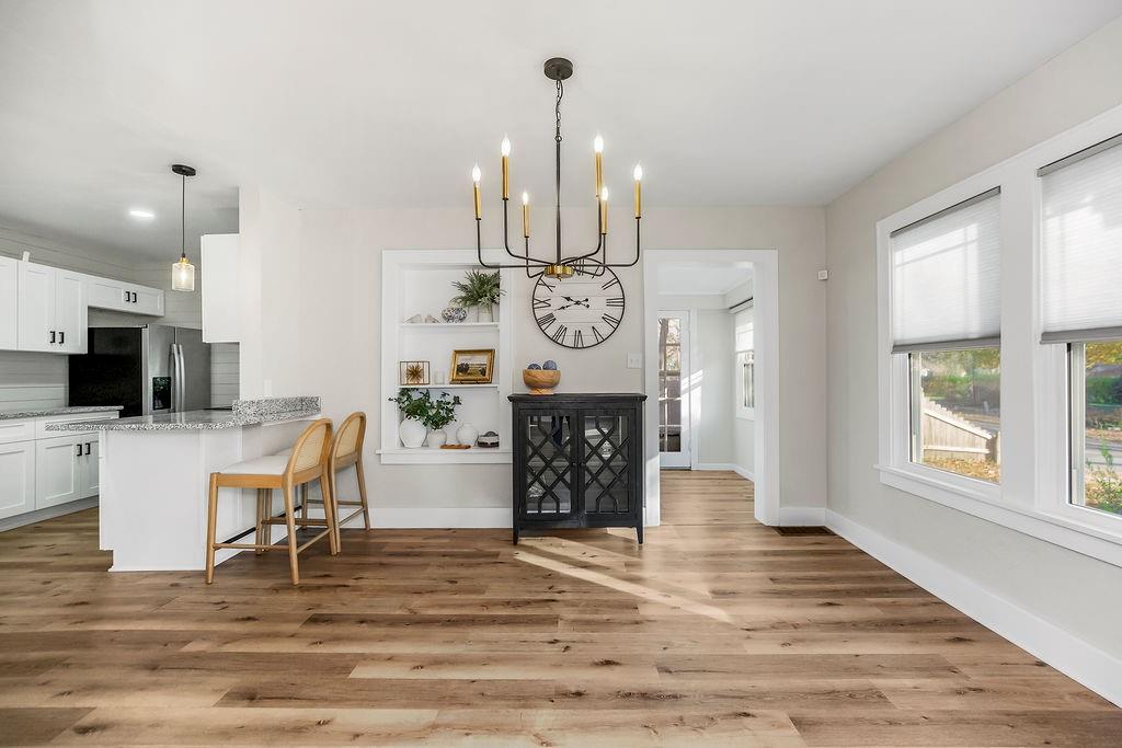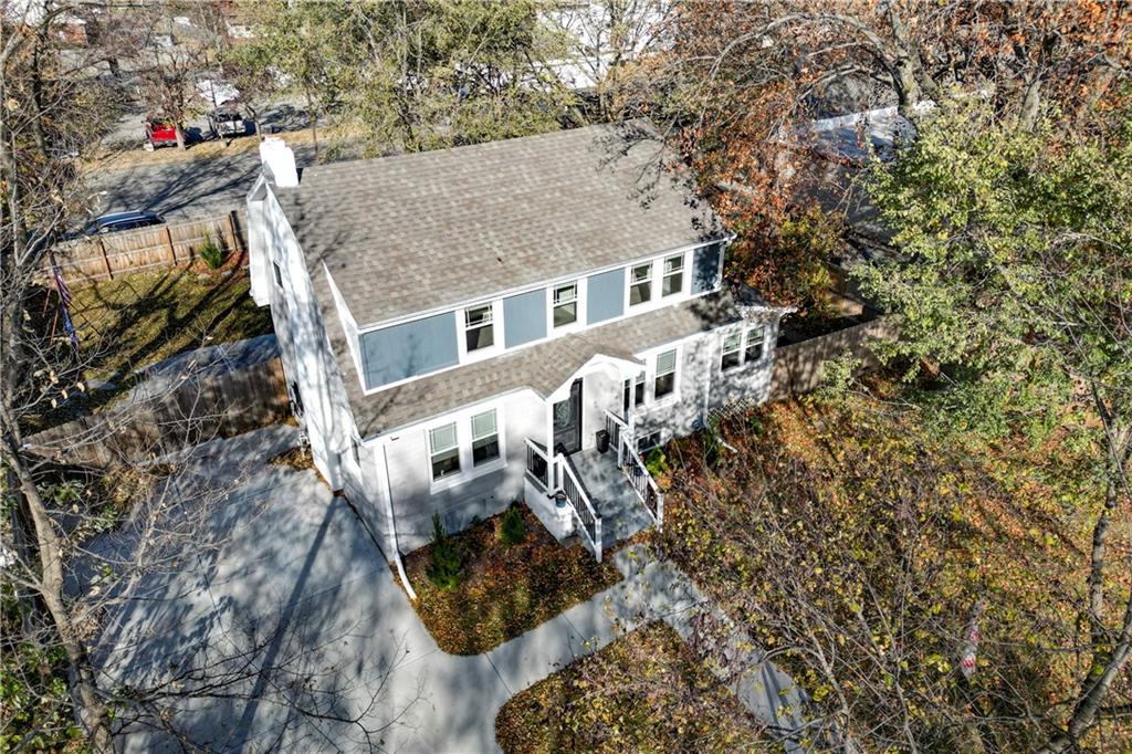 Welcome home to this beautifully updated Dutch Colonial, perfectly positioned in the heart of Blue Springs’ historic district—just steps from downtown, schools, and local parks. Classic character meets modern comfort at every turn. The spacious family room invites you in with a cozy fireplace and luxury vinyl plank flooring that flows throughout the main level. Entertain with ease in the formal dining room and updated eat-in kitchen, featuring granite countertops, stainless steel appliances, shiplap accents, a breakfast bar, and generous storage. A bright sunroom/mudroom adds everyday function with a built-in boot bench and direct access to the backyard, while a main-level half bath offers added convenience for guests. Upstairs, you’ll find three generously sized bedrooms with ample closet space and upgraded window shades. The primary suite shines with an oversized closet and private bath highlighted by a sliding barn door and tiled shower. The partially finished lower level expands your living space with a versatile non-conforming fourth bedroom, complete with a walk-in closet and half bath, plus a dedicated laundry area with sink. Thoughtful upgrades throughout include high-efficiency ProVia windows, an Aprilaire humidifier, built-ins, and stylish fixtures on every level. Outside, enjoy a spacious fenced yard with a remodeled front porch, patio, storage shed, lush landscaping, and a full 6-foot privacy fence. A double-wide driveway provides plenty of off-street parking. This historic gem delivers space, style, and unbeatable walkability—right in the heart of Blue Springs.