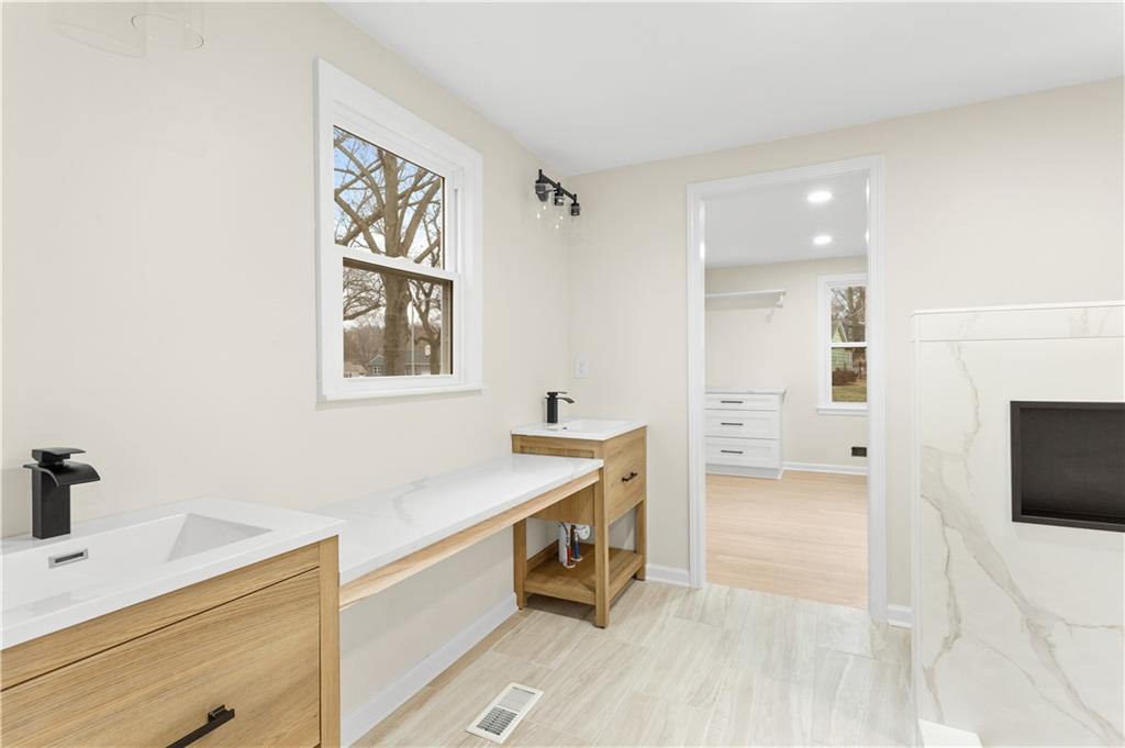 Welcome to this beautifully reimagined home in the heart of Prairie Village, where modern updates meet timeless charm. This fully renovated property has been thoughtfully transformed into a spacious 3 bedroom, 3 ensuite bathroom home with high-quality improvements throughout. Inside, you’ll find brand new refinished floors that flow seamlessly through the main living areas, complemented by all new electrical and plumbing systems for true peace of mind. The home also features brand new windows that have been custom tinted to provide an added layer of privacy while helping reduce utility costs during hot summer months. New gutters and downspouts, plus a roof that’s less than three years old, offer long-term durability and efficiency. A new garage door with a brand new motor system adds both convenience and curb appeal. The newly created primary suite is a true retreat, featuring a large walk-in shower with dual shower heads, a custom makeup vanity station, and a huge walk-in closet complete with stackable washer and dryer, custom cabinetry, and an additional washer/dryer hookup in the basement for added flexibility. Every bathroom and bedroom has been completely updated with modern finishes and fixtures, and the home has been freshly painted inside and out, giving it a clean, move-in ready feel. At the heart of the home is a brand new kitchen designed for both everyday living and entertaining. You’ll love the custom soft-close cabinetry, thoughtful storage details, and all LG black stainless steel appliances. Just off the kitchen, a screened-in porch creates the perfect space to relax, dine, or entertain while enjoying the outdoors. Outside, fresh landscaping enhances curb appeal and provides a polished, welcoming first impression. This is a rare opportunity to own a truly move-in ready, fully updated home in one of Prairie Village’s most desirable locations. Welcome home!