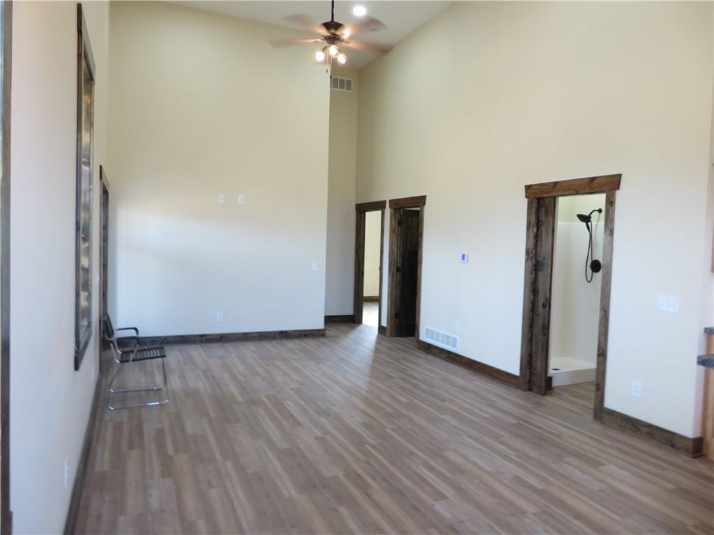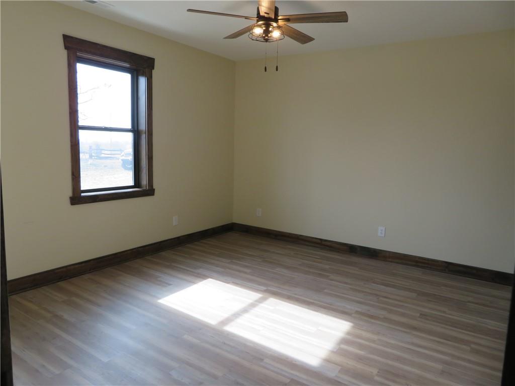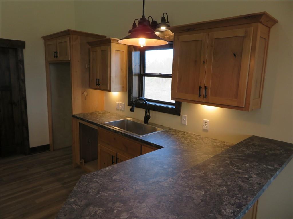 New, recently finished Barndominium on 12+-acres. 2bedroom, 2 bath, open floor plan. Custom kitchen & large, shelved pantry. Oversized primary suite w/enormous walk-in closet & large full bathroom w/extra cabinets for storage. Unique finishes, and light fixtures throughout. Covered front porch on east side is perfect for enjoying the views and Kansas sunrises. Oversized 35'x16' garage w/extra storage above finished space, 12' door perfect for large vehicle parking. 35'x15' attached lean-to has RV/camper hook-ups. Expansive 12+-acres w/nice pond, perimeter fencing & 3-sided shed for animal shelter. This property can easily be set-up for horses/livestock. Lovely country setting on paved road. Settle in and stay awhile!