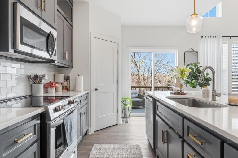 Meticulously maintained and move-in ready, this stunning 1.5-story townhome offers the perfect blend of style, space, and functionality. Featuring 3 bedrooms and 2.5 baths, this thoughtfully designed home includes a luxurious main-level primary suite complete with a huge walk-in closet and private bath showcasing a spacious walk-in shower. The open-concept main level is filled with natural light from soaring ceilings and a dramatic wall of windows. The beautifully appointed kitchen is the heart of the home, offering a massive island, custom cabinetry, stainless steel appliances, and a generous walk-in pantry — ideal for both everyday living and entertaining. Convenient main-level laundry and a powder room add to the home's practical layout. Upstairs, you’ll find a large bonus loft area creating flexible living space perfect for guests, a home office, or media area. A second primary suite upstairs features exceptional closet space and beautiful finishes throughout. The walk-out basement is ready to be finished to suit your needs and backs to peaceful green space for added privacy. Enjoy low-maintenance living with an HOA of just $100/month covering mowing and snow removal. This exceptional home combines comfort, elegance, and convenience — don’t miss your opportunity to make it yours!