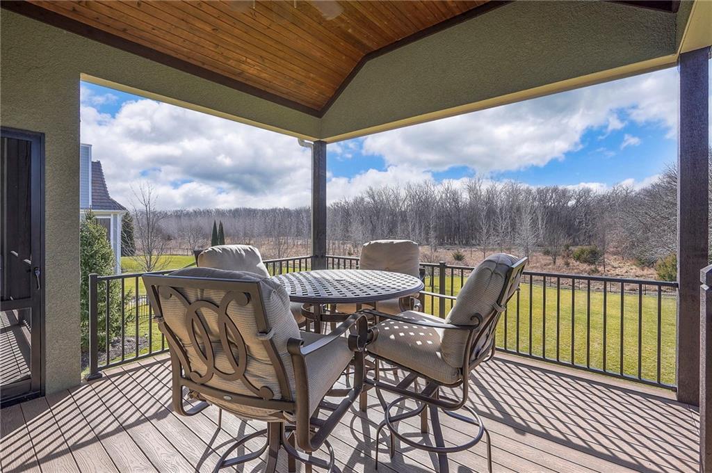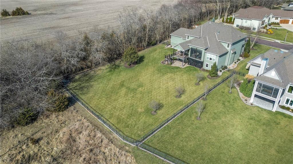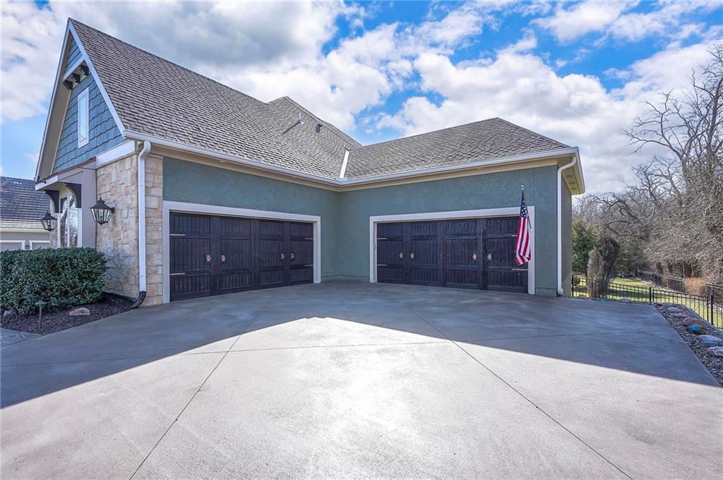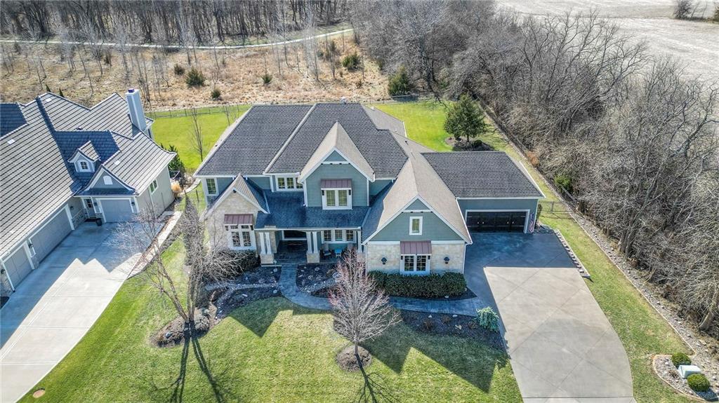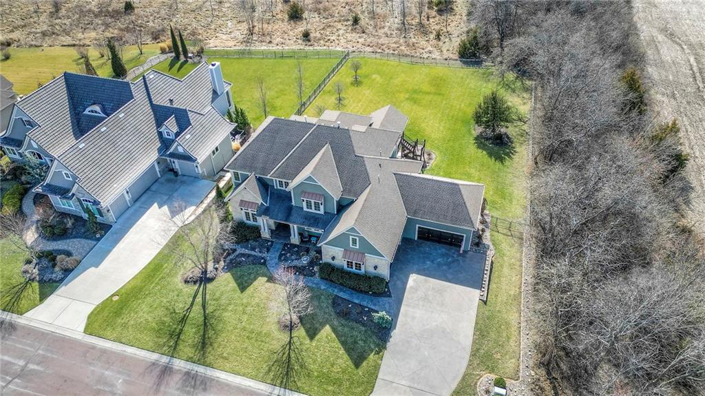 This may be The MOST DESIRABLE & REMARKABLE LOT in the whole subdivision of Polo Fields Reserve! This one-owner custom designed 1.5 story home has been meticulously built with 2x6 construction plus well- maintained. HUGE bonus for home backs to the Johnson County Parks & Rec Coffee Creek Steamway Trail! Covered Front Porch w/ Lush Landscaping greets you as you approach the Secluded Lot. The Grand Entry showcases the 2 story open concept layout. Den w/ French doors along w/ a Formal Dining Rm or Music Rm. The Great Rm is flooded w/ Natural Light & Soaring Ceilings w/ detailed beams. The layout continuously flows into the Chef’s Gourmet Kitchen w/ more beams in the Breakfast Rm. An Impressive & Well-Designed Butler’s Pantry & Walk-in Pantry are off the kitchen & a spacious mudrm w/ more built-in lockers for all of one’s needs is off the garage. There is no lack of storage or space in the Oversized 4 car Garage w/ Epoxy Floors. The Primary Suite is just as Pristine w/ designer wallpaper & custom drapes. The Primary Ensuite also has uncompromising quality that will not disappoint. The secondary bedrms on the second level are spacious, each having its own ensuite & walk-in closet. There is also a bonus/rec rm on the second level as well. The Walkout Lower Level is just as enchanting w/ floor to ceiling windows which allow for natural light. An impressive Wet Bar is the perfect place for entertaining a crowd or intimate enough for a smaller setting. The Recreational Area is the perfect place for a game of pool (not included). The Family Rm features a Rustic Barn Wood Wall. In addition a 5th Bedrm w/ its own ensuite, plus an Exercise Rm. The Fenced Backyard backs to GREEN SPACE plus NO neighbors behind the home or to the west. Relax in one of 3 outdoor entertaining areas: the covered screen deck w/ fireplace and TV, the covered deck w/ vaulted ceiling on the upper level, or the lower level screen patio. Tons of storage throughout! This home will not disappoint.