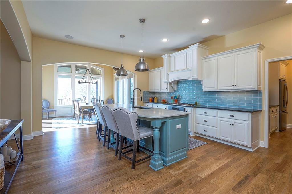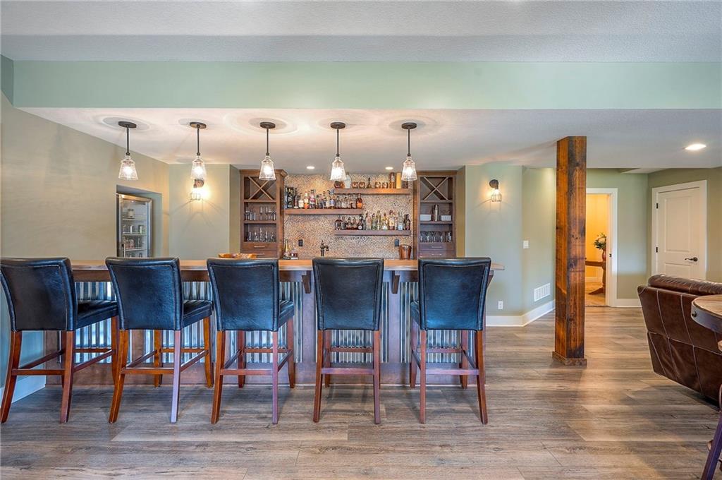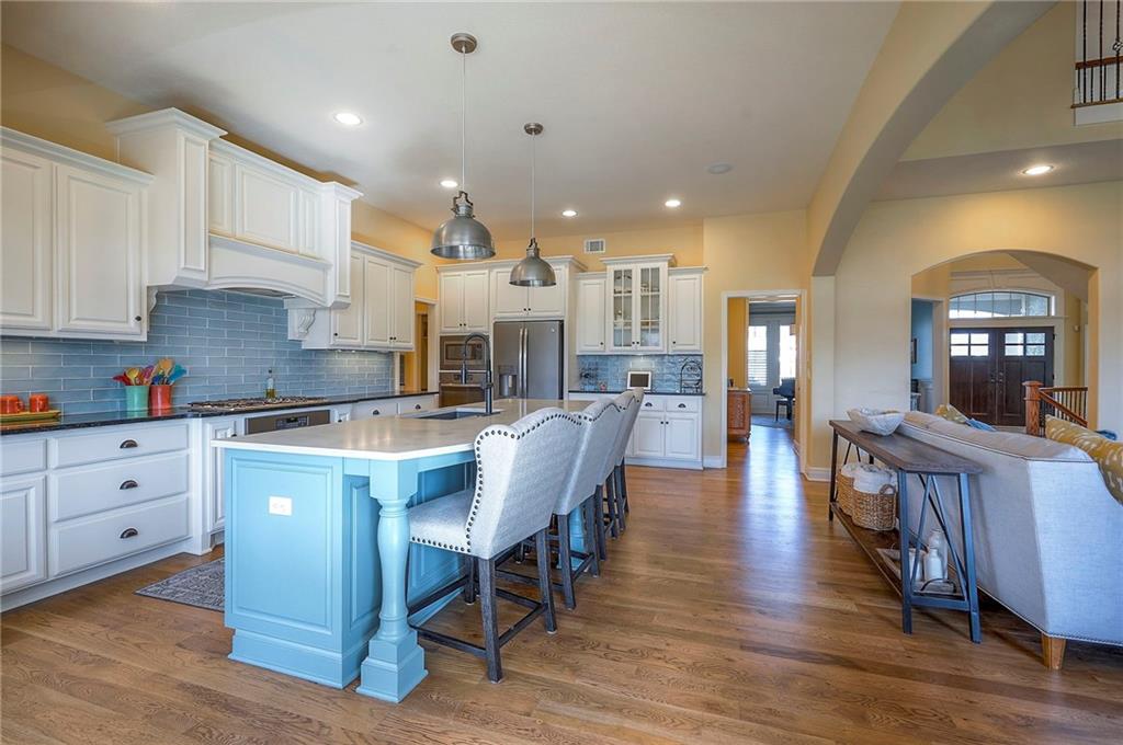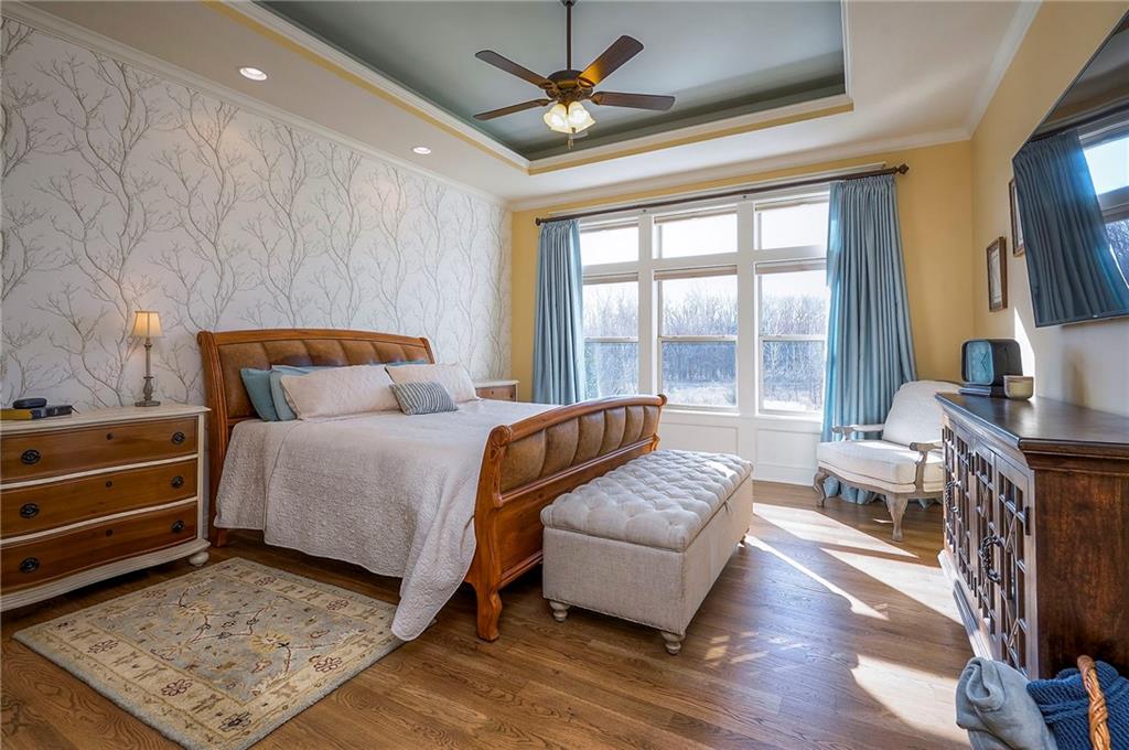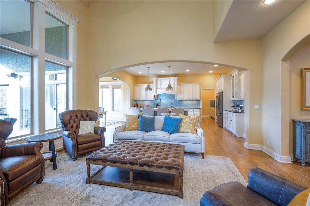 This may be The MOST DESIRABLE & REMARKABLE LOT in the whole subdivision of Polo Fields Reserve! This one-owner custom designed 1.5 story home has been meticulously built with 2x6 construction plus well- maintained. HUGE bonus for home backs to the Johnson County Parks & Rec Coffee Creek Steamway Trail! Covered Front Porch w/ Lush Landscaping greets you as you approach the Secluded Lot. The Grand Entry showcases the 2 story open concept layout. Den w/ French doors along w/ a Formal Dining Rm or Music Rm. The Great Rm is flooded w/ Natural Light & Soaring Ceilings w/ detailed beams. The layout continuously flows into the Chef’s Gourmet Kitchen w/ more beams in the Breakfast Rm. An Impressive & Well-Designed Butler’s Pantry & Walk-in Pantry are off the kitchen & a spacious mudrm w/ more built-in lockers for all of one’s needs is off the garage. There is no lack of storage or space in the Oversized 4 car Garage w/ Epoxy Floors. The Primary Suite is just as Pristine w/ designer wallpaper & custom drapes. The Primary Ensuite also has uncompromising quality that will not disappoint. The secondary bedrms on the second level are spacious, each having its own ensuite & walk-in closet. There is also a bonus/rec rm on the second level as well. The Walkout Lower Level is just as enchanting w/ floor to ceiling windows which allow for natural light. An impressive Wet Bar is the perfect place for entertaining a crowd or intimate enough for a smaller setting. The Recreational Area is the perfect place for a game of pool (not included). The Family Rm features a Rustic Barn Wood Wall. In addition a 5th Bedrm w/ its own ensuite, plus an Exercise Rm. The Fenced Backyard backs to GREEN SPACE plus NO neighbors behind the home or to the west. Relax in one of 3 outdoor entertaining areas: the covered screen deck w/ fireplace and TV, the covered deck w/ vaulted ceiling on the upper level, or the lower level screen patio. Tons of storage throughout! This home will not disappoint.