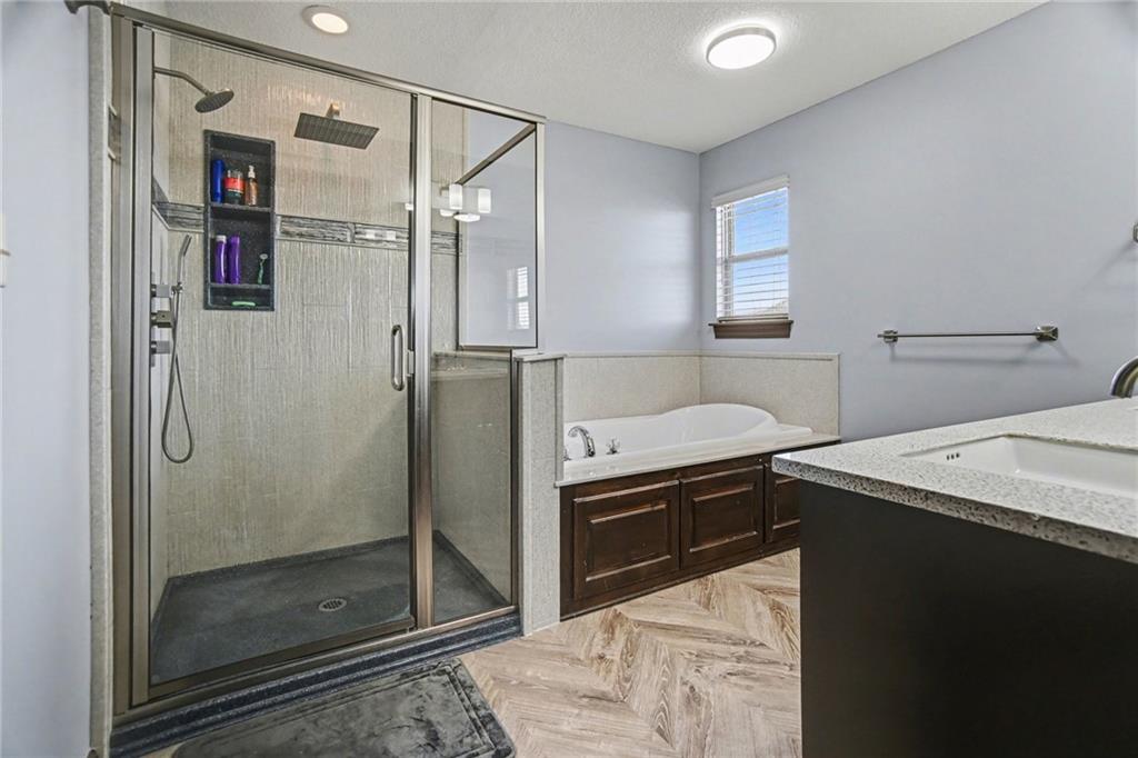 This two-story home truly has it all. Enjoy beautiful wood floors in the kitchen, stainless steel appliances, granite countertops with a large island, and a spacious walk-in pantry. The home features an in-ground sprinkler system, a stamped-edge driveway, and a covered back patio overlooking a fenced yard — perfect for relaxing or entertaining. Retreat to the large primary suite with an oversized walk-in closet and updated master bath. Convenient bedroom-level laundry includes built-ins and shelving for added storage. Located just two doors from the neighborhood pool and walking trails, this home offers both comfort and convenience.