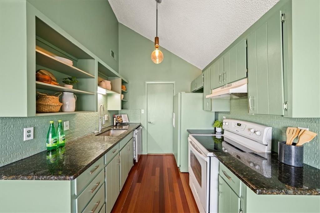 Enjoy unbeatable location and convenience with maintenance-free, one-level living in the desirable Four Colonies community. This beautifully updated condo features rich Brazilian cherry hardwood floors throughout the living room, dining room, and hallway. The galley-style kitchen offers granite countertops and freshly painted cabinetry, creating a warm and functional space for everyday living. Recently painted throughout, this three-bedroom, two-bath home also includes a nicely sized, fenced outdoor patio—perfect for relaxing or entertaining guests. Residents of Four Colonies enjoy exceptional amenities, including scenic walking trails, four swimming pools, and two clubhouses, all designed to enhance an easy and active lifestyle.