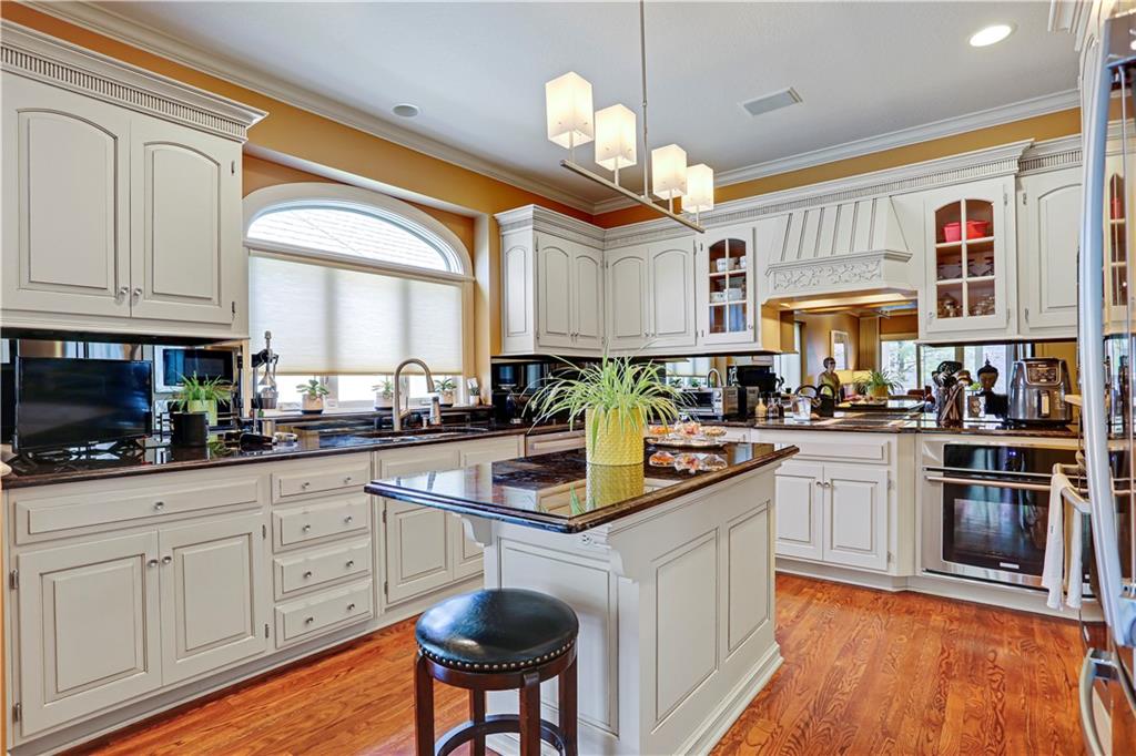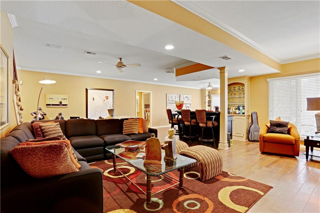 Nestled within the exclusive, gated, and maintenance-provided Edgewood community, this exquisite villa is the epitome of luxury living. As a former model home, it boasts every imaginable upgrade, along with a meticulous full remodel that radiates sophistication and pride of ownership. Step inside to discover 4 spacious bedrooms, 4 beautifully appointed baths, and an impressive 2-car garage. The gourmet kitchen is a chef's dream, featuring top-of-the-line stainless steel appliances, double ovens, a sleek mirrored backsplash, and a brand-new large pantry. The centerpiece is a stylish center island w solid surface tops. The great room wows with soaring 14-foot ceilings and an abundance of natural light, enhanced by stunning new light fixtures that add a contemporary touch and modern fireplace remodel. Retreat to the primary suite, a true sanctuary with its spa-inspired, fully redesigned bathroom—offering a tranquil escape at the end of the day and includes a relaxing whirlpool tub .The walkout lower level is equally impressive, showcasing two additional bedrooms, a handsome custom bar, and a spacious recreation room that opens onto a covered patio. It's the perfect space for entertaining or unwinding. The home also features new windows, custom built ins, gleaming hardwood floors on the main level, and luxury vinyl plank flooring below, ensuring every detail is both stylish and functional. Custom blinds and plantation shutters included in the TV room. The charming, covered porch with new ceiling fan is also a rare find. Lush, lovely upgraded landscaping surrounds this residence plus newly added flagstone walk & porch. This villa is more than a home—it's a lifestyle, offering elegance, comfort, and convenience in one of the most sought-after communities. Don't miss your opportunity to experience this masterpiece firsthand! It checks ALL the boxes .Just A Stones Throw to The Shops and Fine Restaurants at Town Center Along With Easy Highway Access.