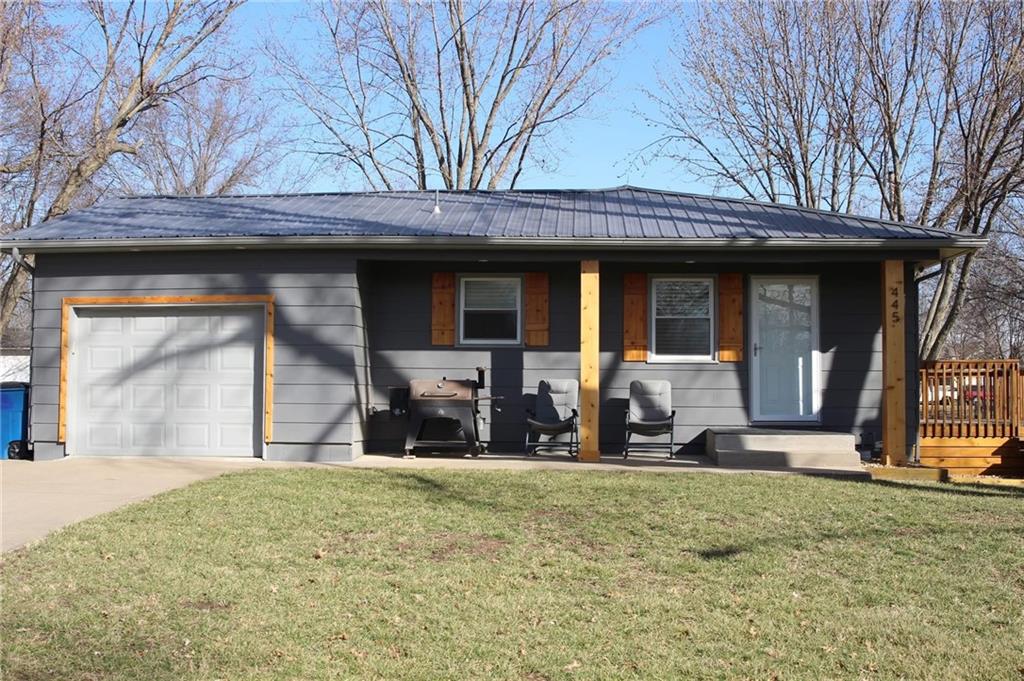 This home sits beautifully on the corner of 5th and Hickory. coming from Homes Rd take a Left (east on Locust) a Right (South) on 3rd then left (east) on Hickory! Home sits about .2 miles down on the left! 15 miles from 71 or 5 miles to 69 Hwy- only about 30 min to Olathe!
