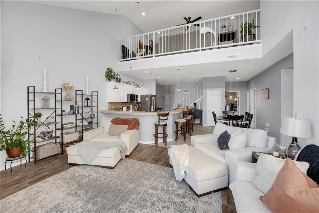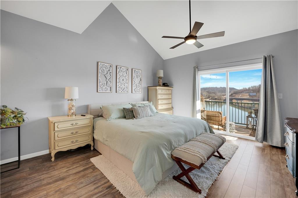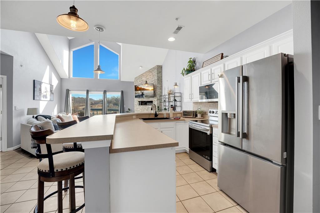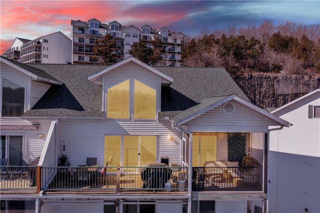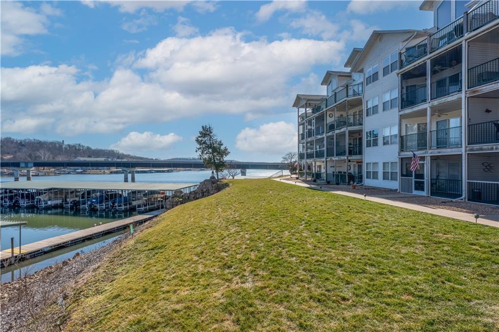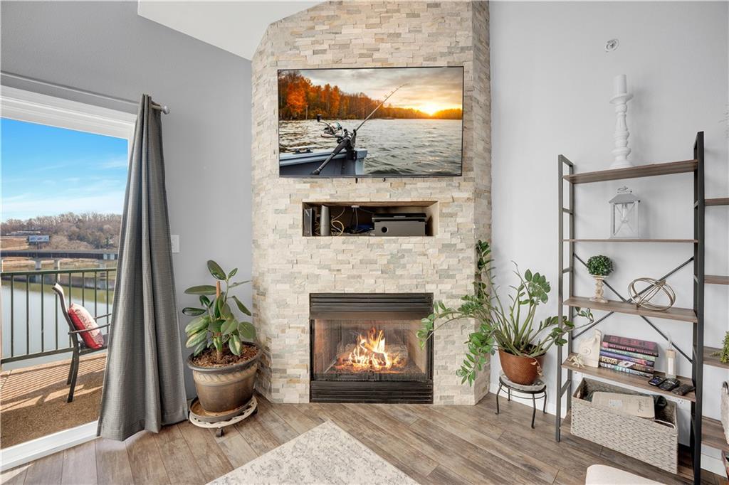 Experience lake living in this 4-bedroom, 2-bath penthouse condominium offering approximately 1,923 square feet in the Cedar Heights community. The open layout features vaulted ceilings, abundant natural light, and a stone fireplace. Enjoy two outdoor spaces, including a screened deck and an open sun deck for relaxing and taking in the surroundings. The kitchen offers stainless steel appliances, a spacious peninsula, and tile backsplash. The primary suite includes vaulted ceilings, a walk-in shower, and walk-in closet. A second bedroom connects to a Jack-and-Jill bath, with an additional main-level bedroom. The upper-level loft provides a flexible living area plus a fourth bedroom with walk-in closet and plumbing for a potential third bath. A 12x30 boat slip is included. Community amenities include three swimming pools and maintained common areas. Convenient access to golf, dining, shopping, entertainment, and Ballparks National. Seller will pay all levied special assessments prior to closing. Nightly rentals permitted per community guidelines. This property is offered furnished for a turn key experience. Some antiques and personal items are not included. Don't miss this opportunity for a great lake condo!